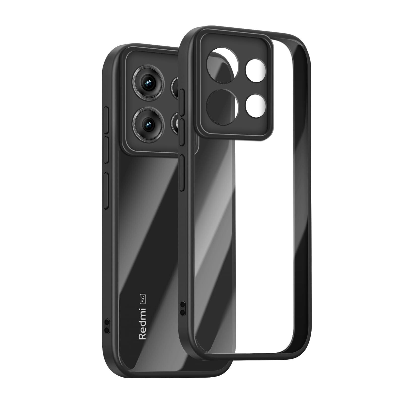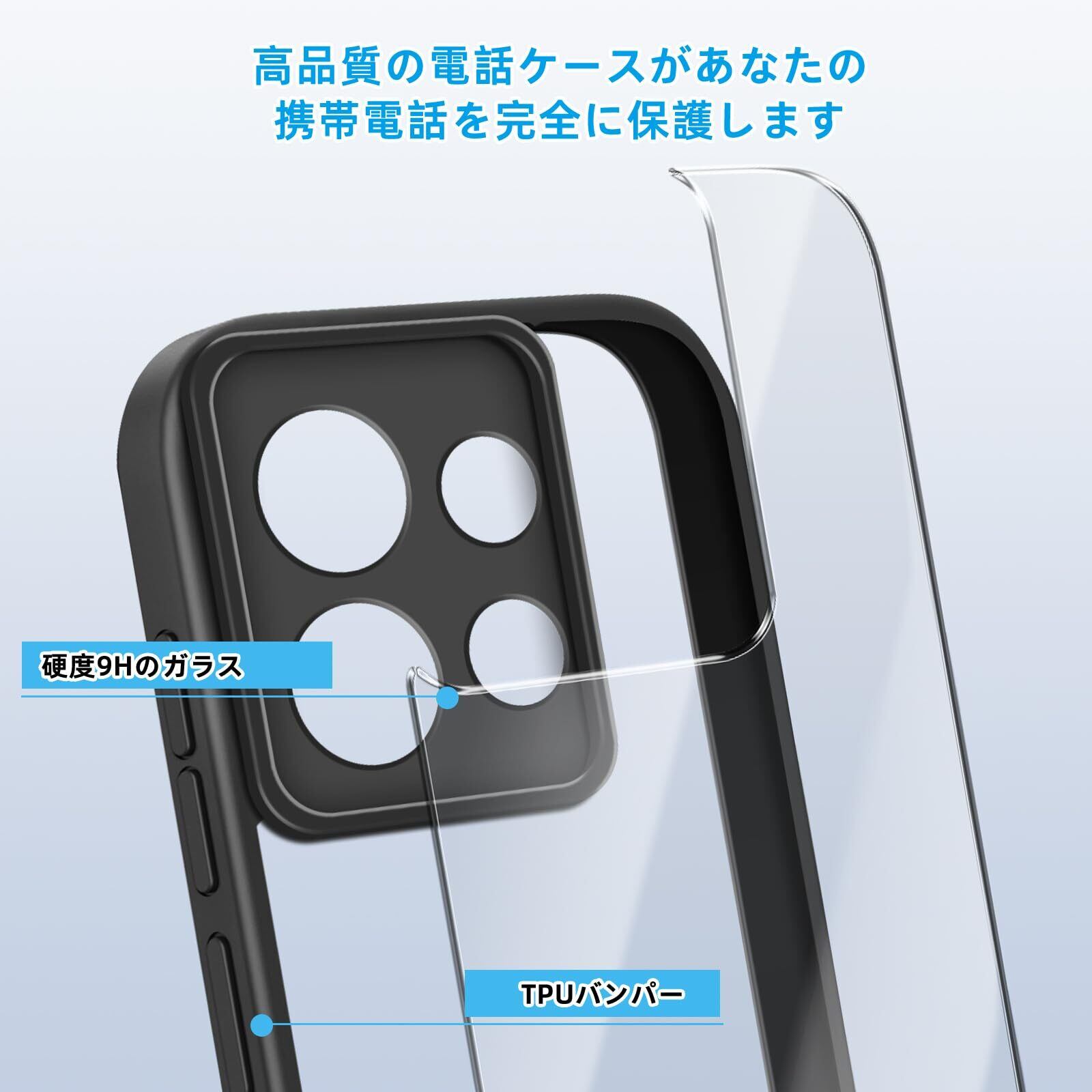 [SinRenn] Xiaomi Redmi Note 13 Pro 5G ケース クリア 360°全面保護 薄型 レンズ保護 スマホケース 耐久性 透明PC背面+ソリッドカラー TPUフレーム 耐衝撃 携帯カバー 黄変 擦り傷防止 米軍MIL規格 落下防止 携帯ケース Xiaomi Redmi Note 13 Pro 5G スマホカバー (ブラック)