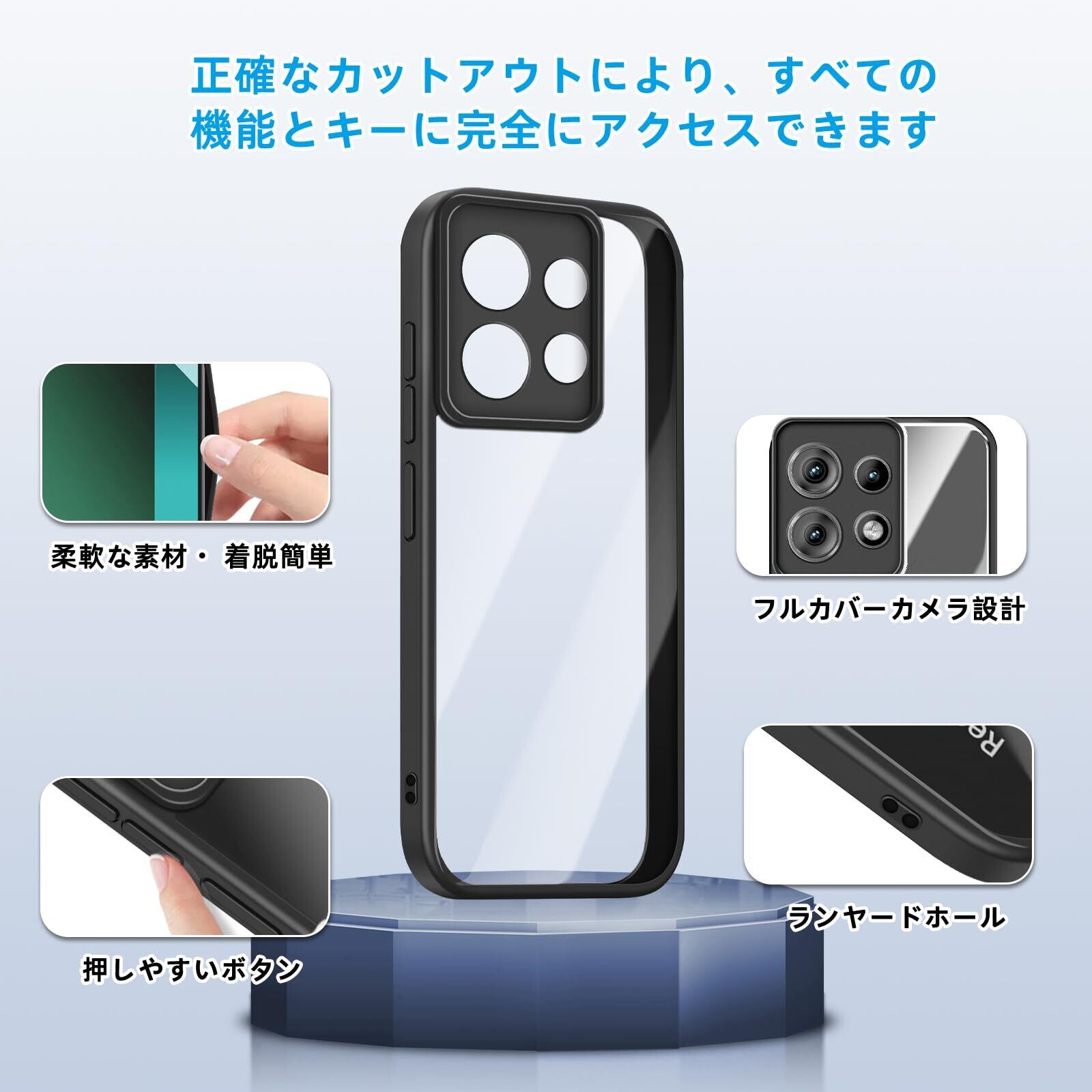 【スリムプロファイル】Xiaomi Redmi Note 13 Pro 5G 専用ケースです。(! ! !ご使用前に表裏の保護フィルムを剥がしてください)ソリッドカラーのフレームと透明な背面デザインは、携帯電話本来の美しさと色を完璧に表現します。透明なカバーは、機能を損なうことなく、デバイスのユニークな優雅さを際立たせます。(ご注意:モニター、照明、角度の違いにより、多少の色の違いがある場合がございます。)
