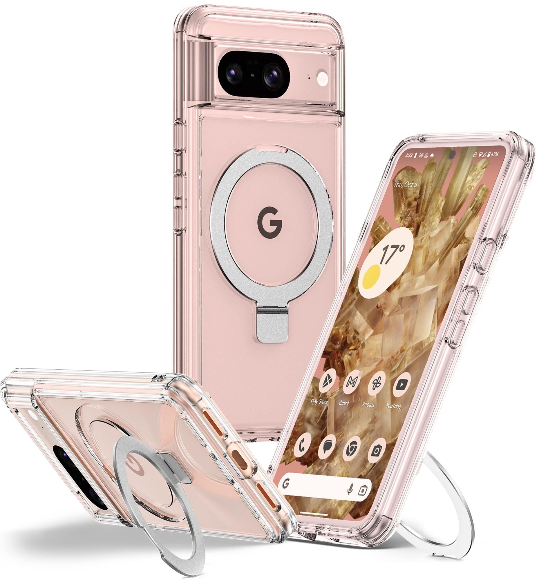 【数量限定】【Newnugds】Google Pixel6A ケース 【Magsafeリング・スタンド一体】 Magsafeリング・スタンド一体丸型スタンド付きマグネット搭載 縦横両対応 米軍MIL規格 耐衝撃 マット感 透明 指紋防止 黄変防止 カメラレンズ保護 ピクセル6Aカバー 6.1 インチ ケースワイアレス充電対応ストラップホール付き-クリア | allstore5