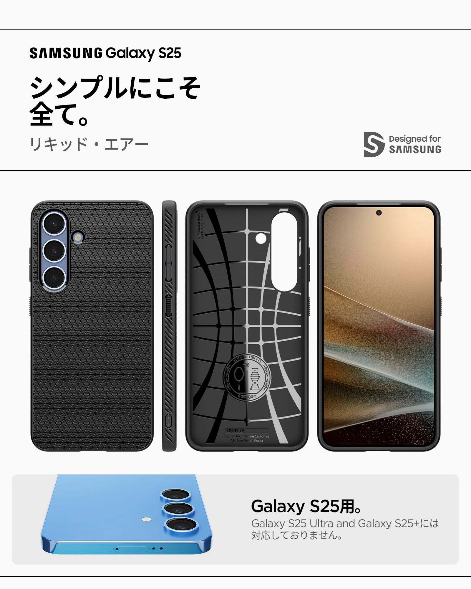 【特価商品】Spigen 【創業18年の技術力】 Galaxy S25 ケース 耐衝撃 薄型 重さ28.9g ストラップホール付き 米軍MIL規格取得 カメラ保護 傷防止 衝撃吸収 リキッド・エアー ACS09000 (マット・ブラック)