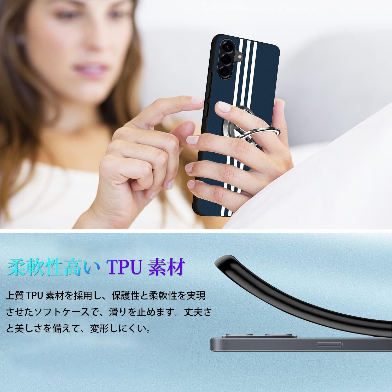 Galaxy A56 5G ケースGalaxy A36 5G ケース リング SC-54F 耐衝撃 TPU 指紋防止 シリコン 車載ホルダー対応 360°回転 ストラップホール付き 滑り止め 落下防止 全面保護カバー(ブルー)