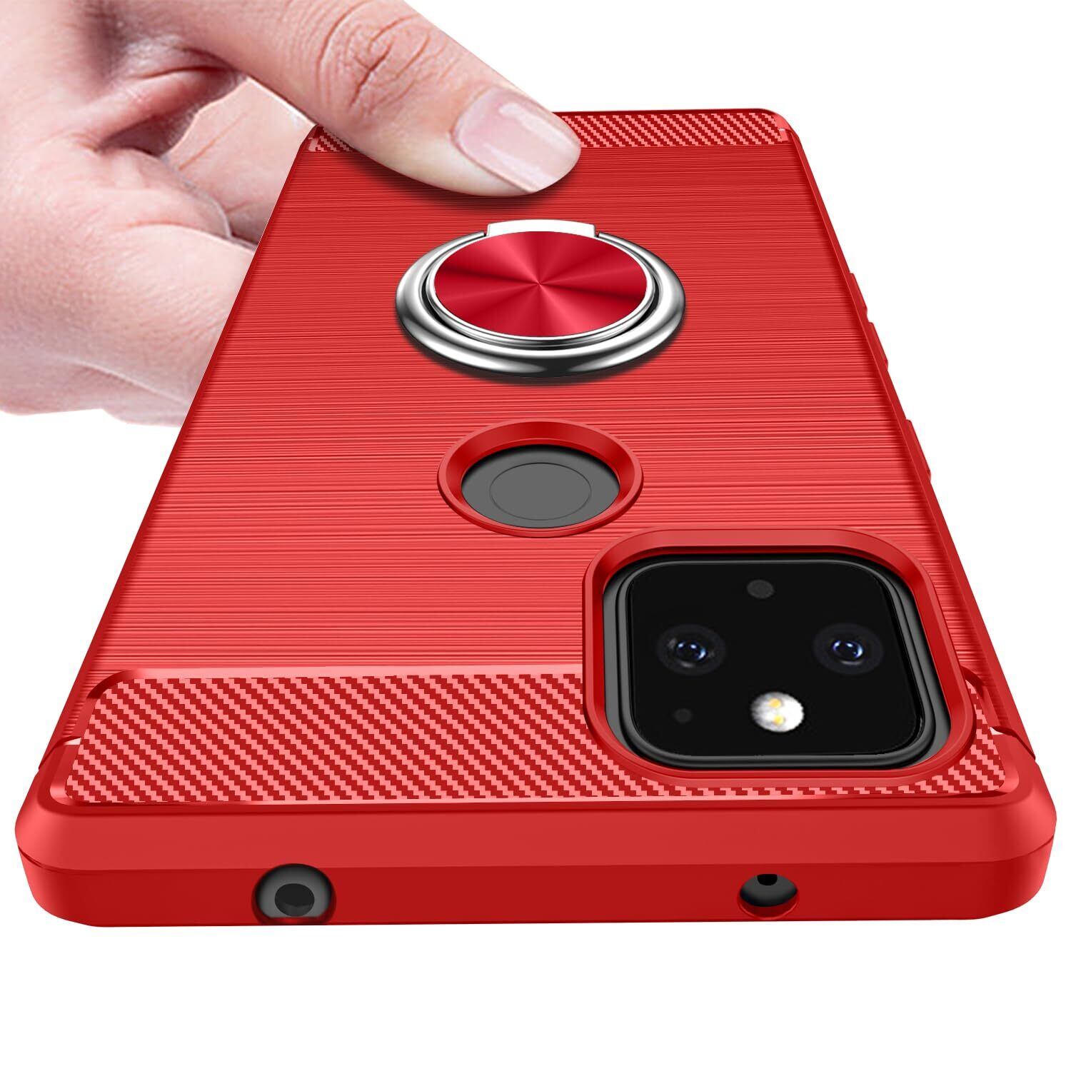 Google Pixel 4A 5G ケース リング付き TPU 炭素繊維スマホケース 衝撃吸収 スタンド機能 薄型 360回転 車載ホルダー対応 散熱加工 指紋防止 スリム ソフト グーグル ピクセル4a 5g 携帯カバー 赤 KC-14-38