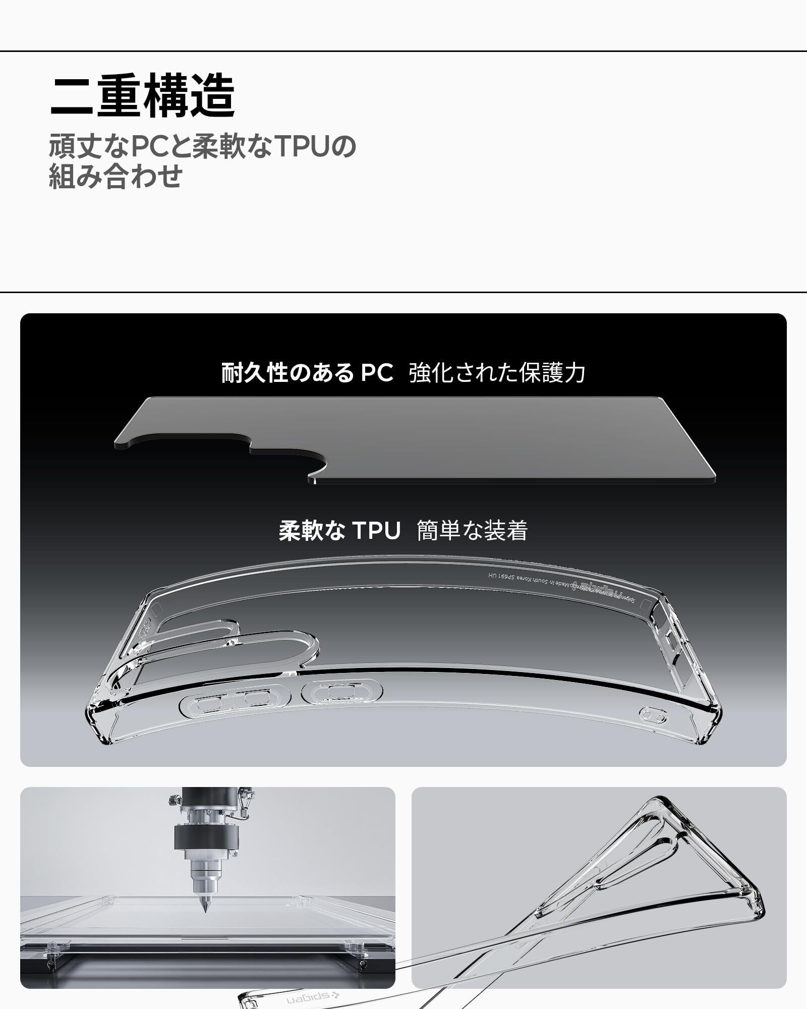 【透明さを守り抜く】黄変を抑制する特殊素材を採用しており、黄変を防ぎます。TPU(熱可塑性ポリウレタン)には補色を応用し作り上げられた『デュラクリア』が使用され、黄変を最小限に抑制しました。