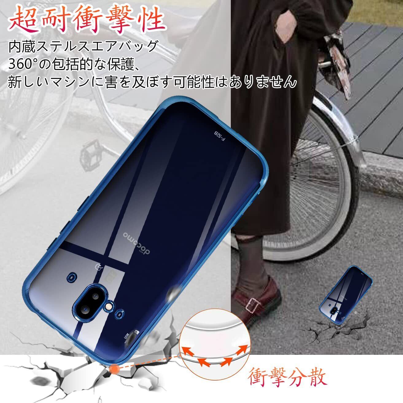 【在庫処分】らくらくスマ-トフォン F-52B ケース クリア 透明 TPU 薄型 軽量 耐衝撃 メッキ加工 ソフトケース 人気 カバー(ブルー)