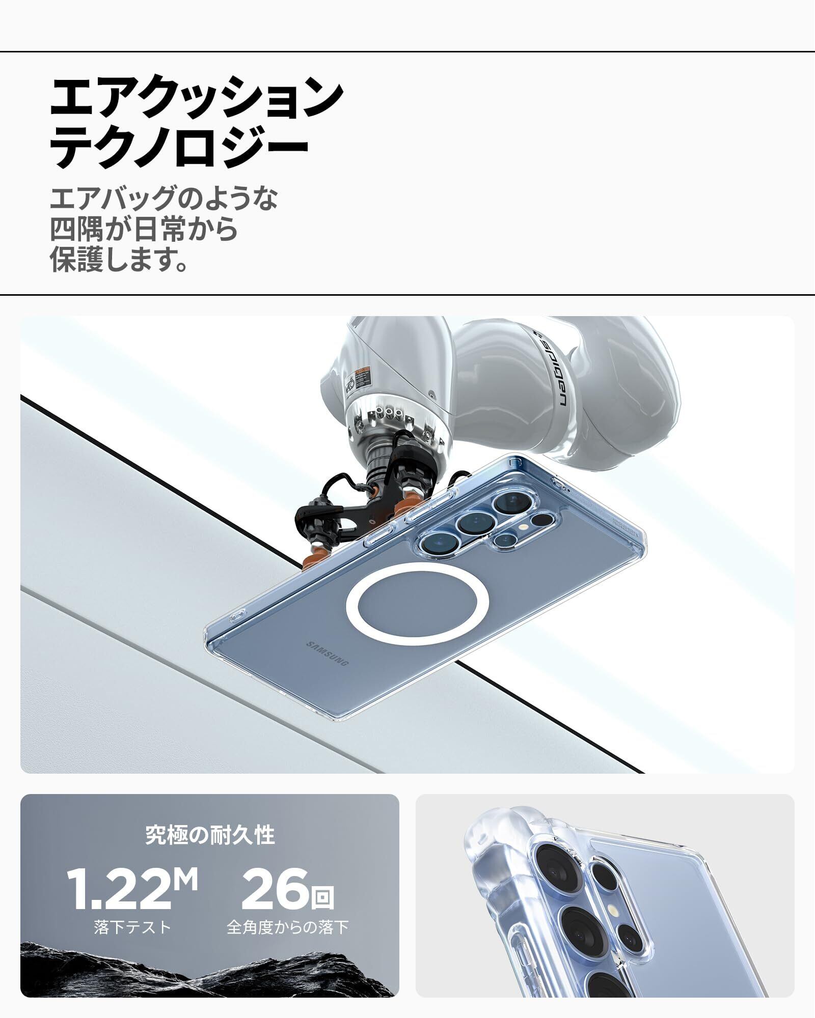 【在庫セール】Spigen Galaxy S25 Ultra ケース クリア Magfit対応 耐衝撃 薄型 軽量 ストラップホール 黄変防止 米軍MIL規格 透明 エアスキン・ハイブリッド・マグフィット ACS08971 (クリア・ホワイト)