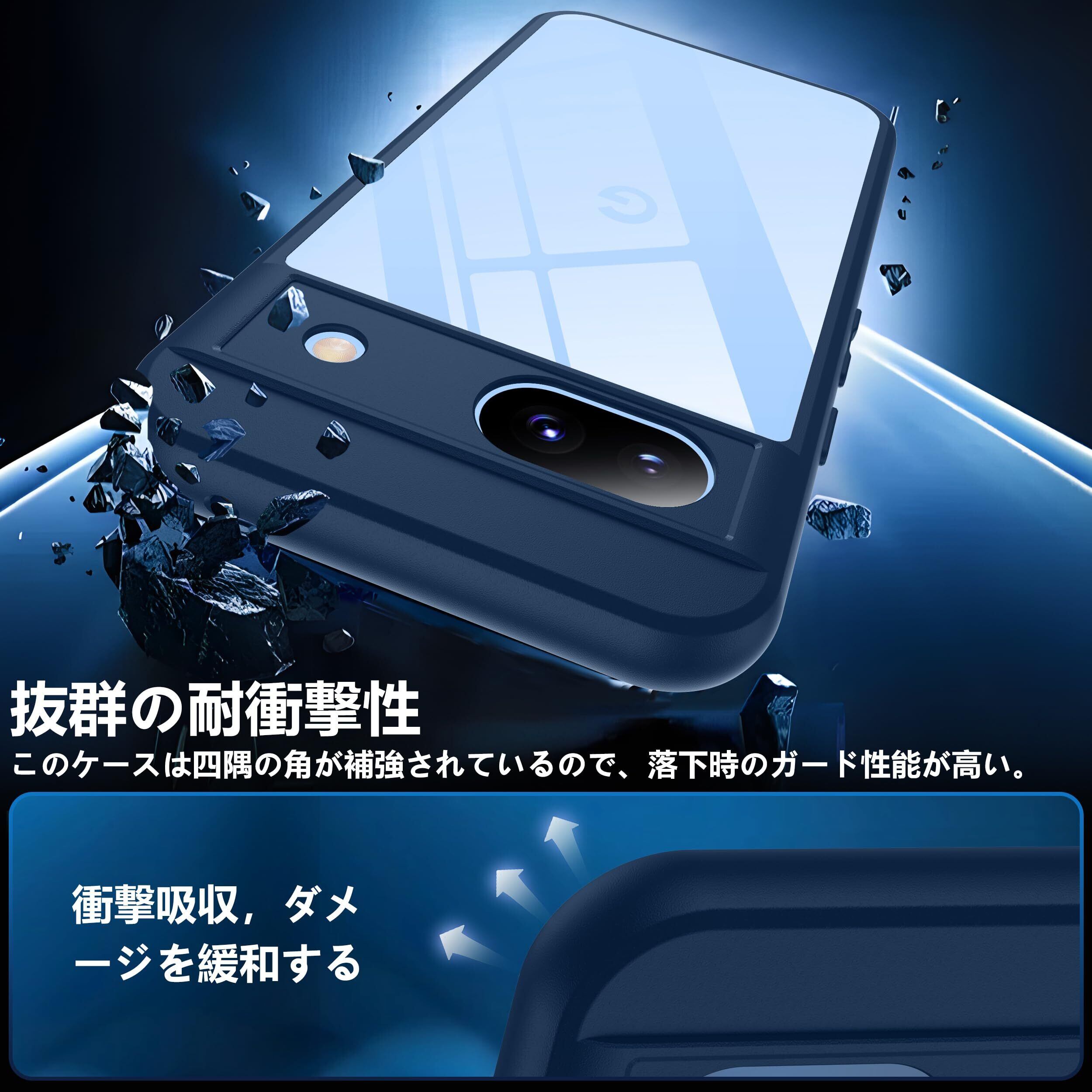 Google Pixel 8a ケース ブルー 黄変防止 グーグルピクセル8a ケース 耐衝撃 ガラスフイルム保護付き 指紋防止 落下防止 耐久性 ストラップホール付 薄型 軽量 ソフトカバー ワイヤレス充電対応 googleピクセル8a
