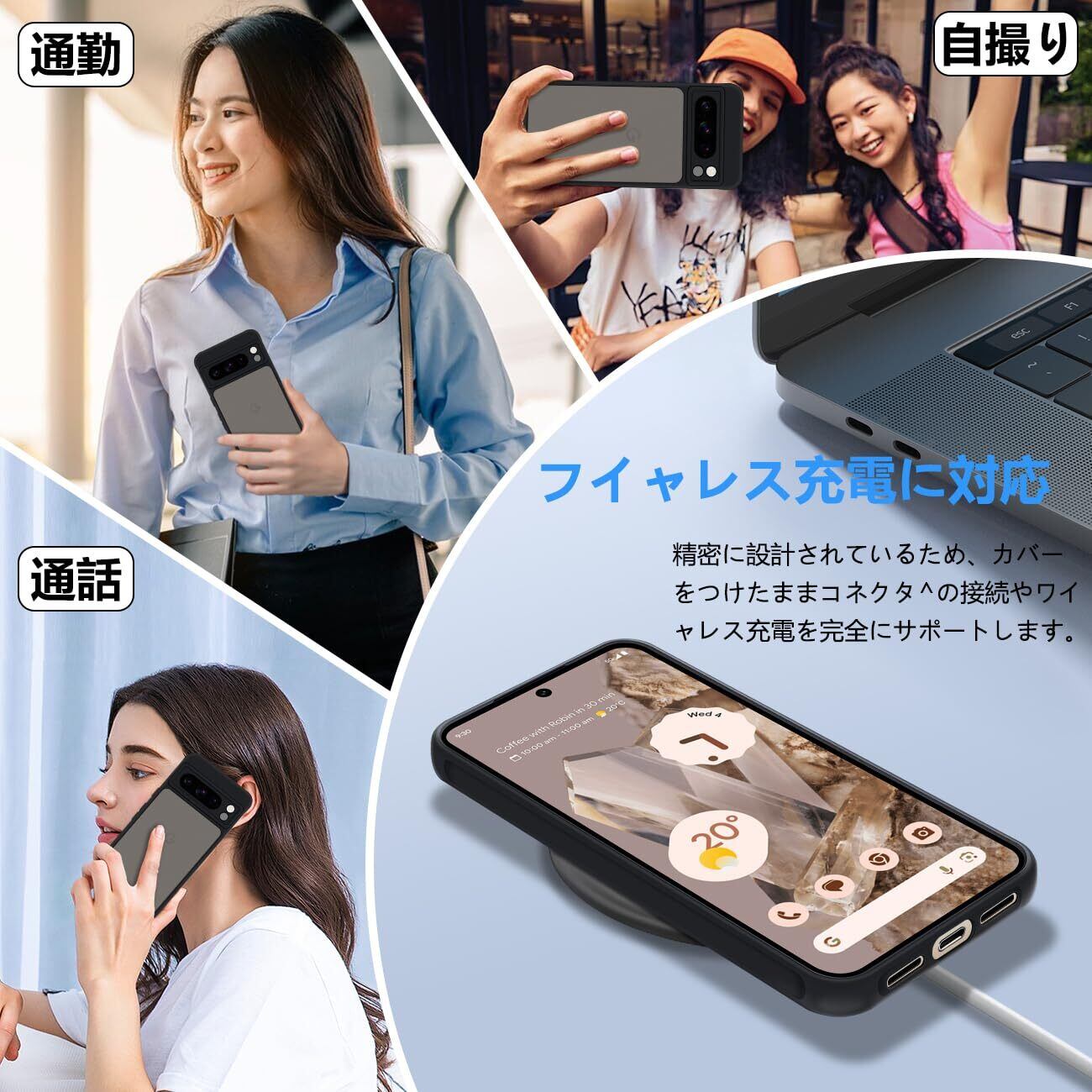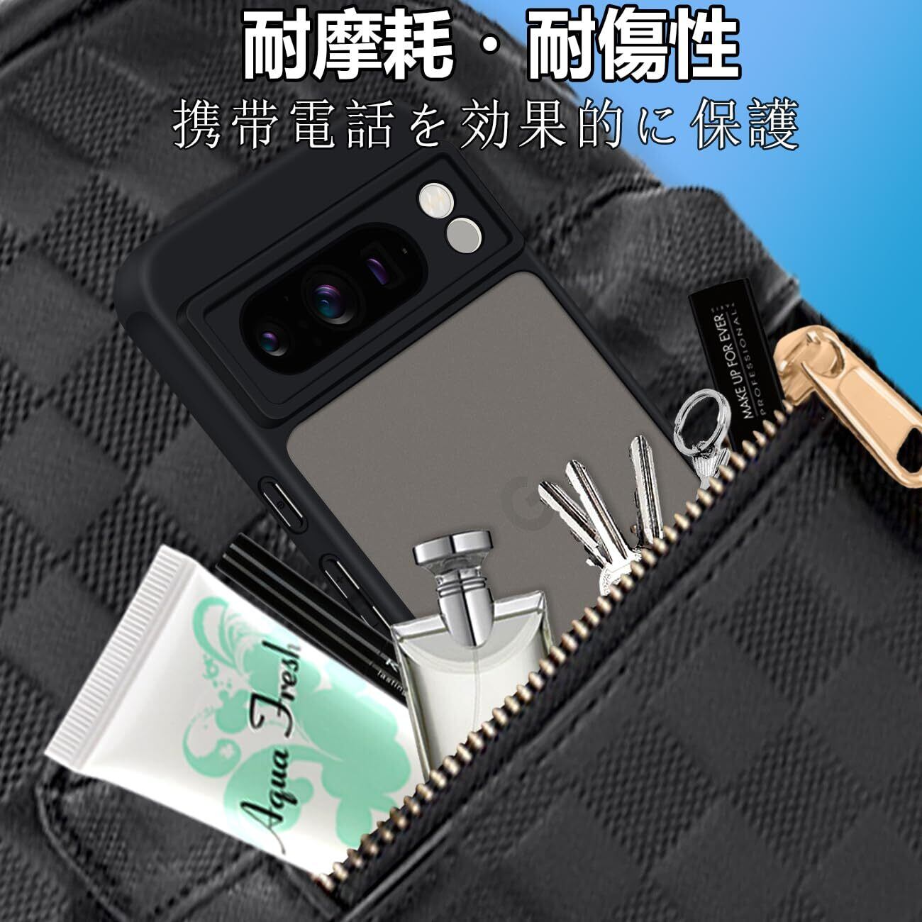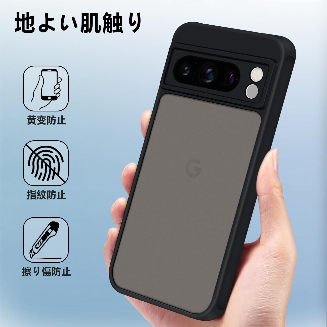 FLY Google Pixel 8pro ケース 半クリア 耐衝撃 滑り止め 指紋防止 ピクセル 8pro ケース 半透明 TPU+PC素材 バンパー2重構造 スマホケース 柔軟で変形しない マット感 黄変防止 落下防止 耐久性 人気 ストラップホール付き ワイヤレス充電対応(ブラック)