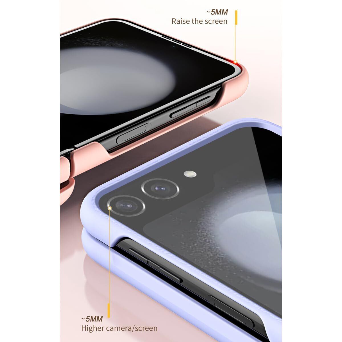 Galaxy Z Flip5携帯360度の完全な保護 ケース+強化ガラスフィルム レザー模様 ヒンジ構造 ペン,肌にやさしい つや消しの表面 指紋防止 手帳型 180度折り畳み式ワンピース ブラケット機能人気 QI充電 ワイヤレス 金属レンズ保護カバー シリカゲル磁性かわいい 磁気防止取り外し ポケット ハイブリッド メイクアップ - 紫