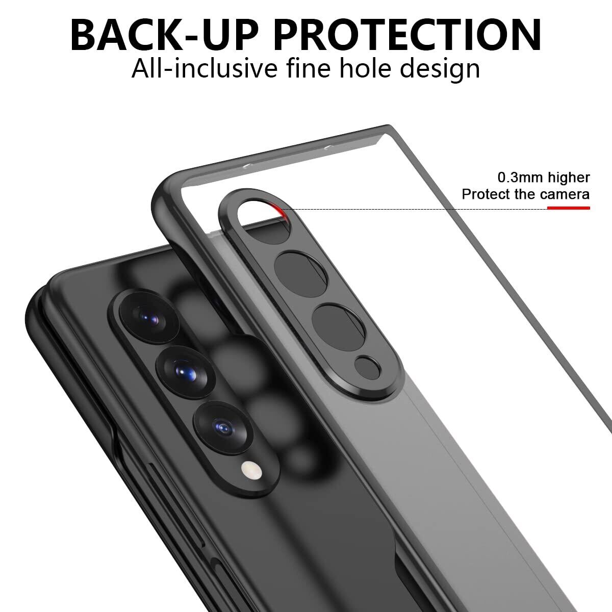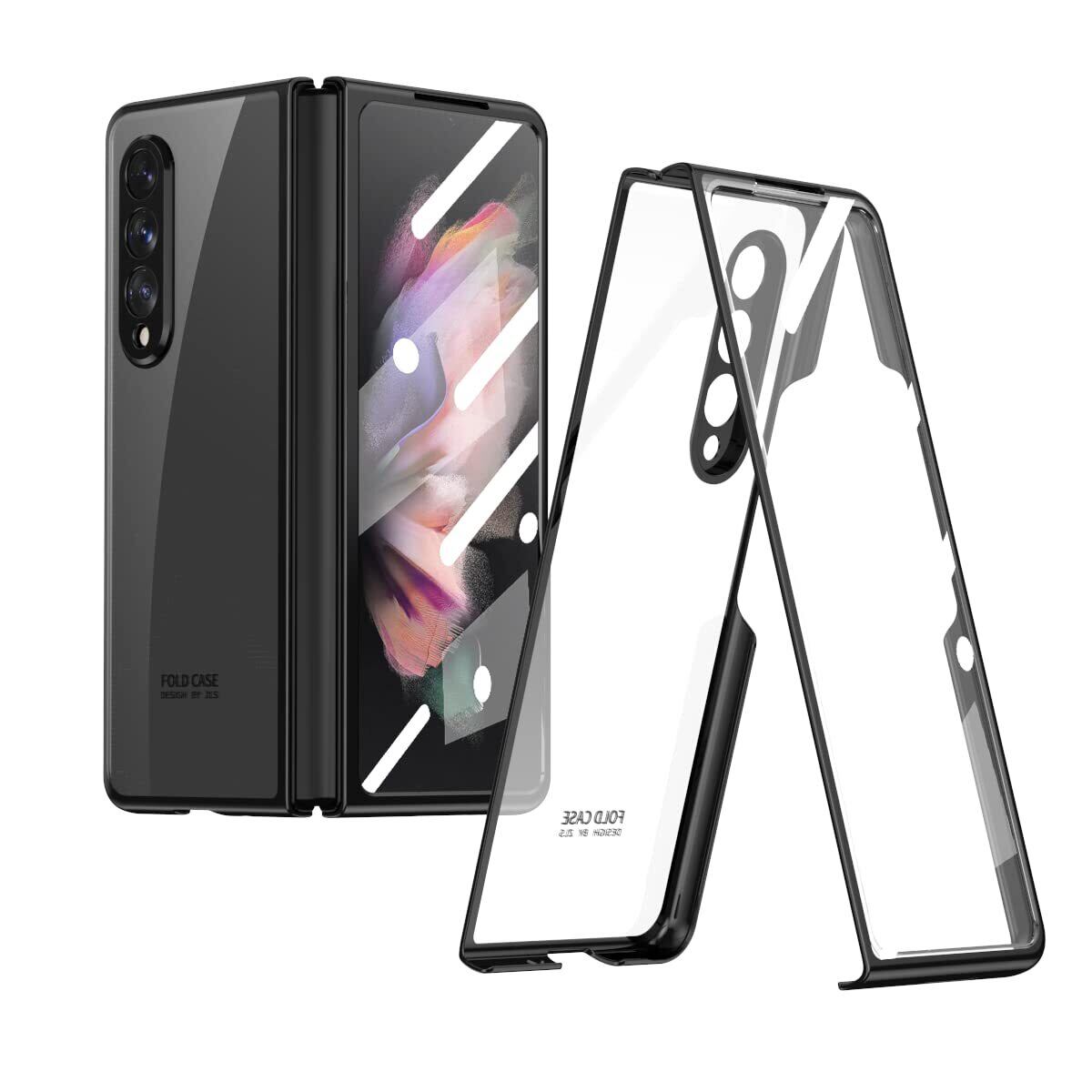 Galaxy Z Fold3 / W22携帯全面保護ケース+強化ガラスフィルム,手帳型 折り畳み ブラケット機能3Dメッキフレーム 透明 おしゃれ クロスパターン、人気 金属レンズ保護 シリカゲル磁性かわいい フリップ 衝撃吸収 キラキラ QI充電 ワイヤレス 財布型カバー、面白い 二層構造 スタンド フリップ 取り外し ポケット ハイブリッド メイクアップ - 黒