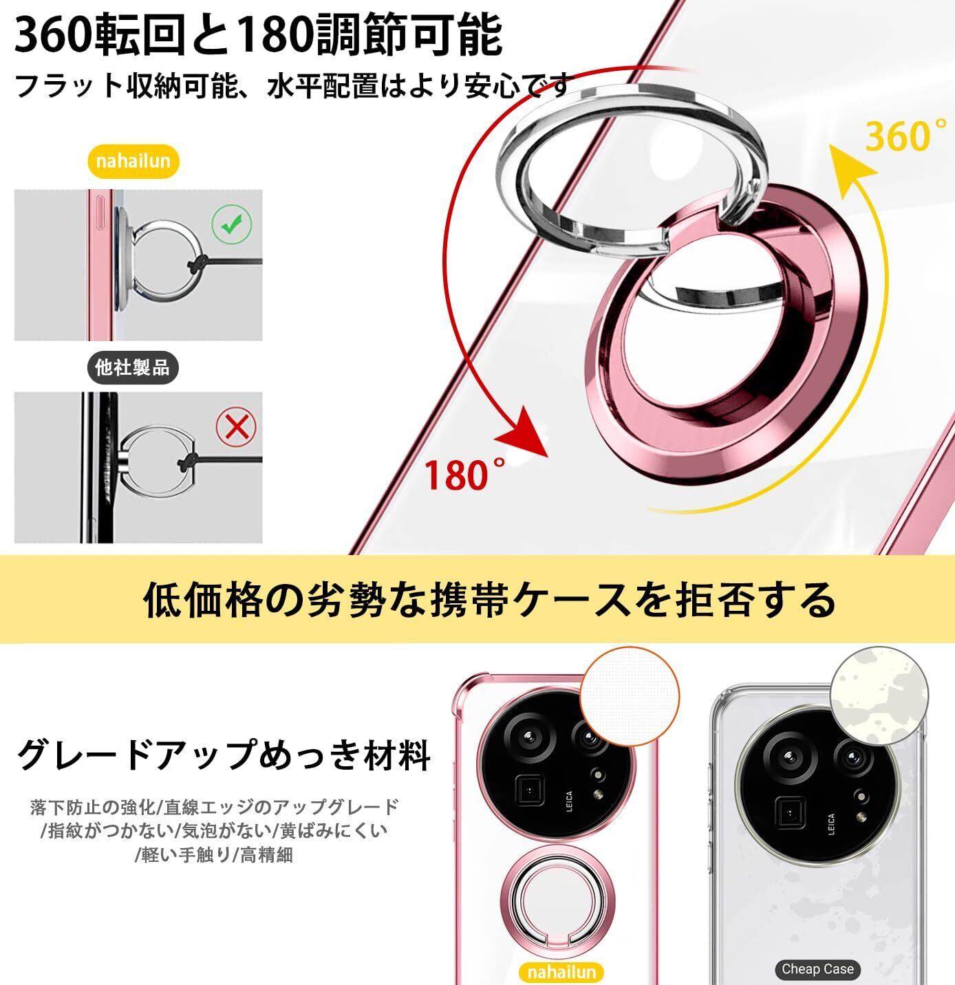 nahailun AQUOS R9 PRO ケース クリア リング付き アクオスR9 Pro スマホケース 耐衝撃 SH-54E カバー aquos r9 pro カバー 柔軟 軽量TPU 透明 薄型 レンズ保護スマホ 落下防止 滑り止め、すり傷防止 360°回転 スタンド機能 車載ホルダー対応 (ローズゴールド)