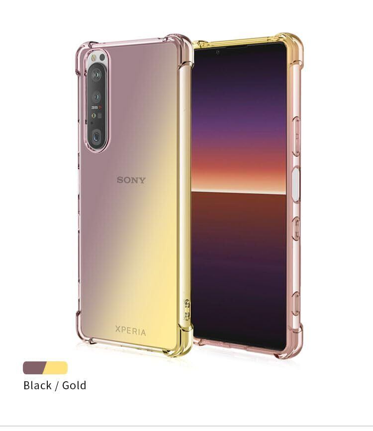 【在庫処分】Sony Xperia 1 VI対応ケース グラデーションカバー 四角エアクッション 耐衝撃 Xperia 1 VI SO-51E SOG13適用クリアTPUソフトケース 全面保護 軽量 落下防止 docomo Xperia 1 VI SO-51E au SOG13用スマホ透明保護カバー ブラック&ゴールド