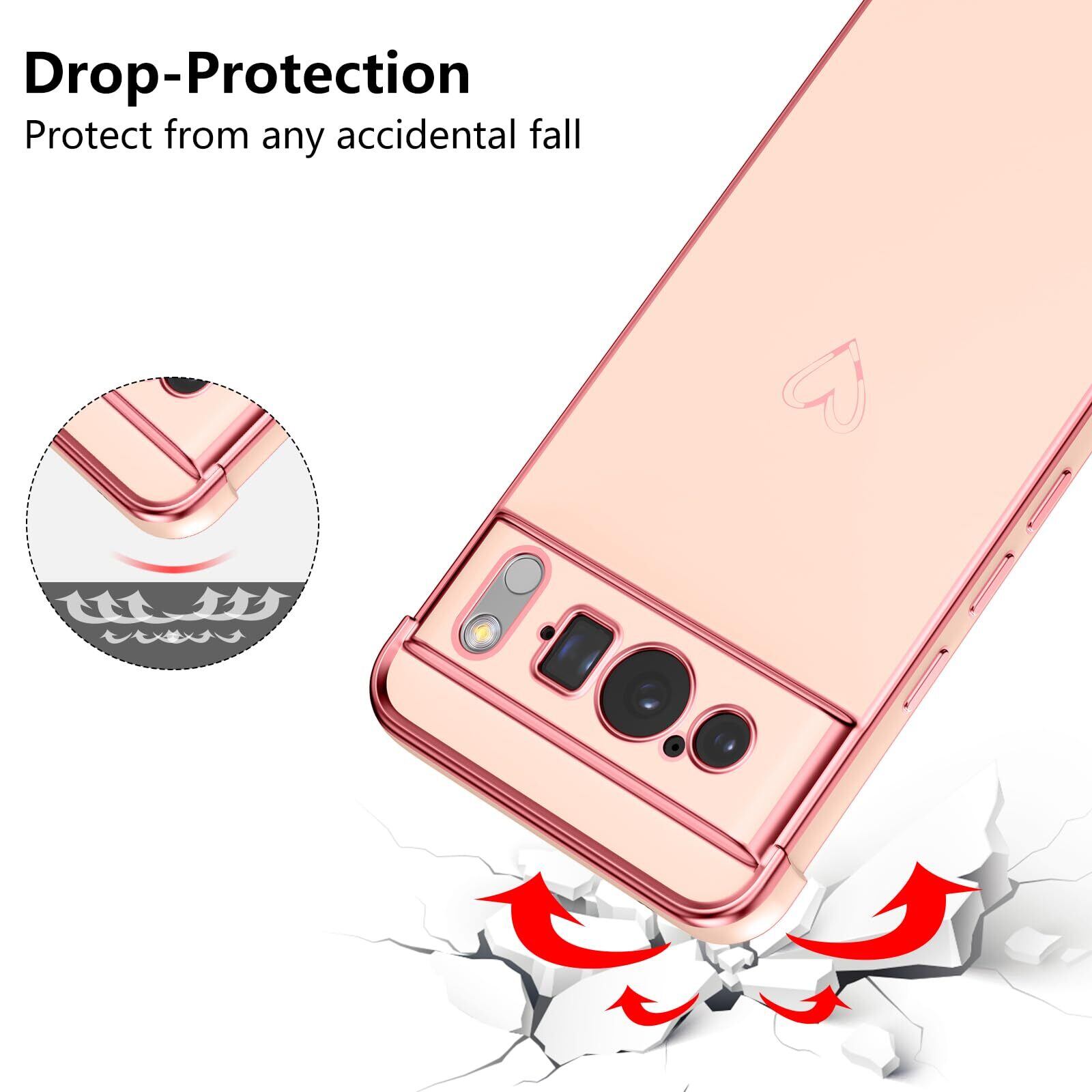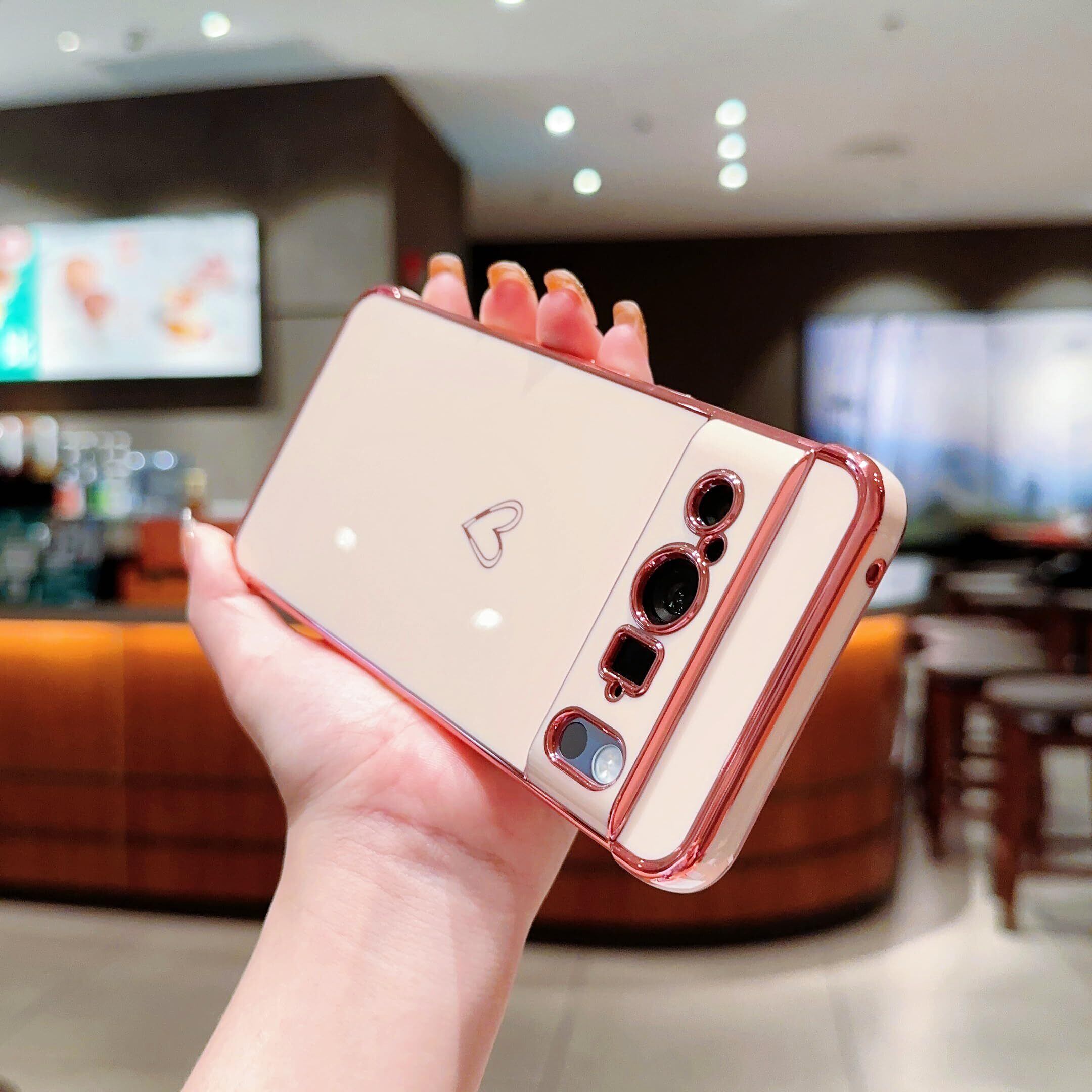 【特価セール】ZTOFERA Google Pixel 8 Pro 用 ハートケース おしゃれ 韓国 かわいい グーグル ピクセル 8 Pro ケース 柔軟な TPU シリコン メッキ加工 ソフト 軽量 耐衝撃 携帯カバー 女性 心パターン Pixel 8 Pro スマホケース ワイヤレス充電対応 (ピンク)