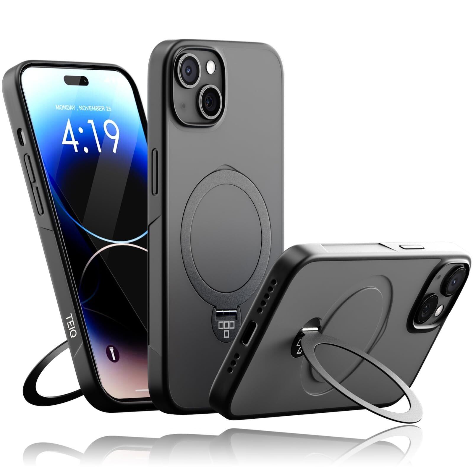 TEIQ iPhone12 ケース 360°回転リング スタンド MagSafe対応 ワイヤレス充電対応 カバー アイフォン 12 用 (ブラック)