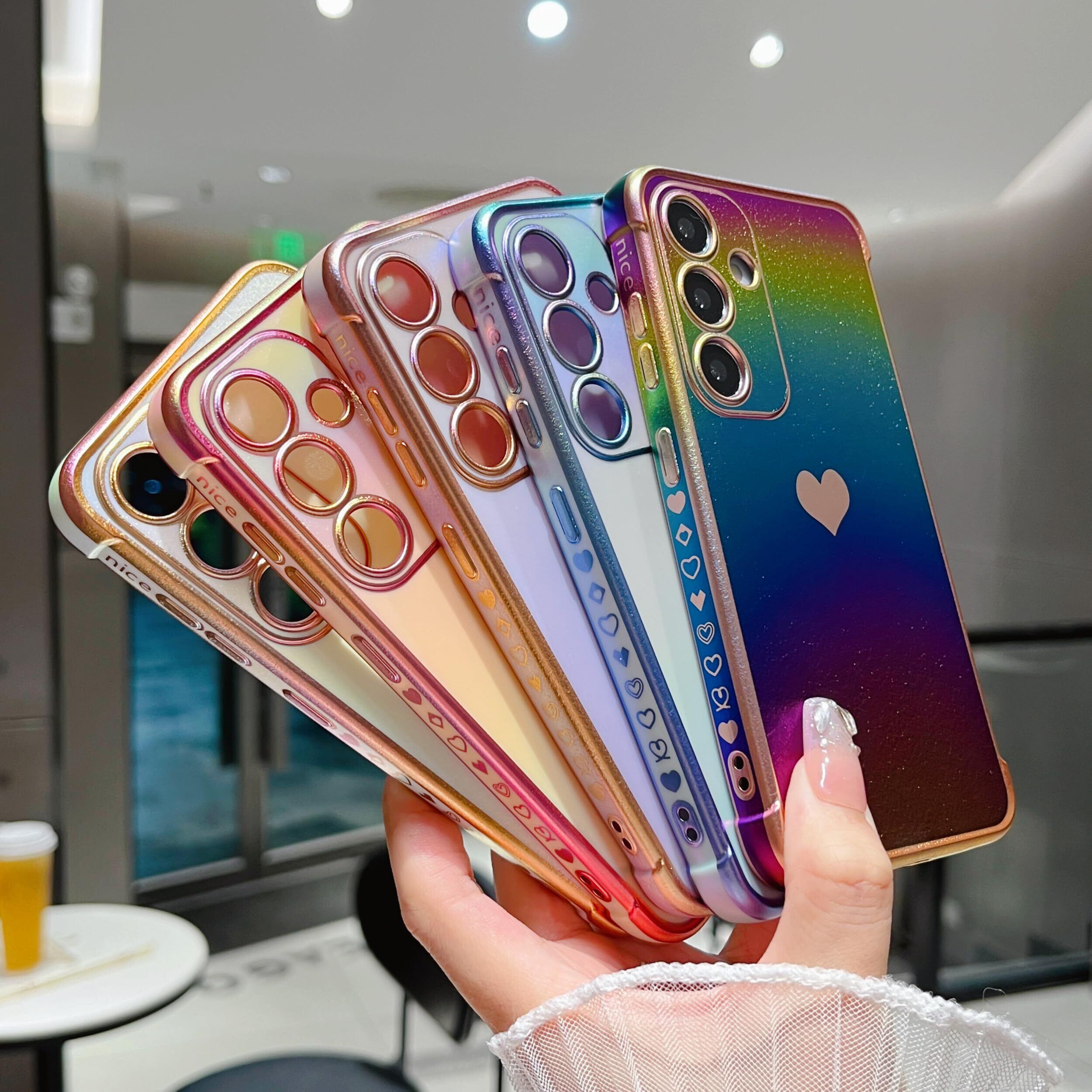 【虹色デザイン】電気メッキ技術により、縁と小さなラブハートパターンを装飾し、メッキされた縁は決して色褪せず、ケース全体が光沢があり、異なる動きや光によって色が変化します; すべてがこのgalaxy s25ケースをよりスタイリッシュにし、目を引く;女の子と女性のための素敵な贈り物。