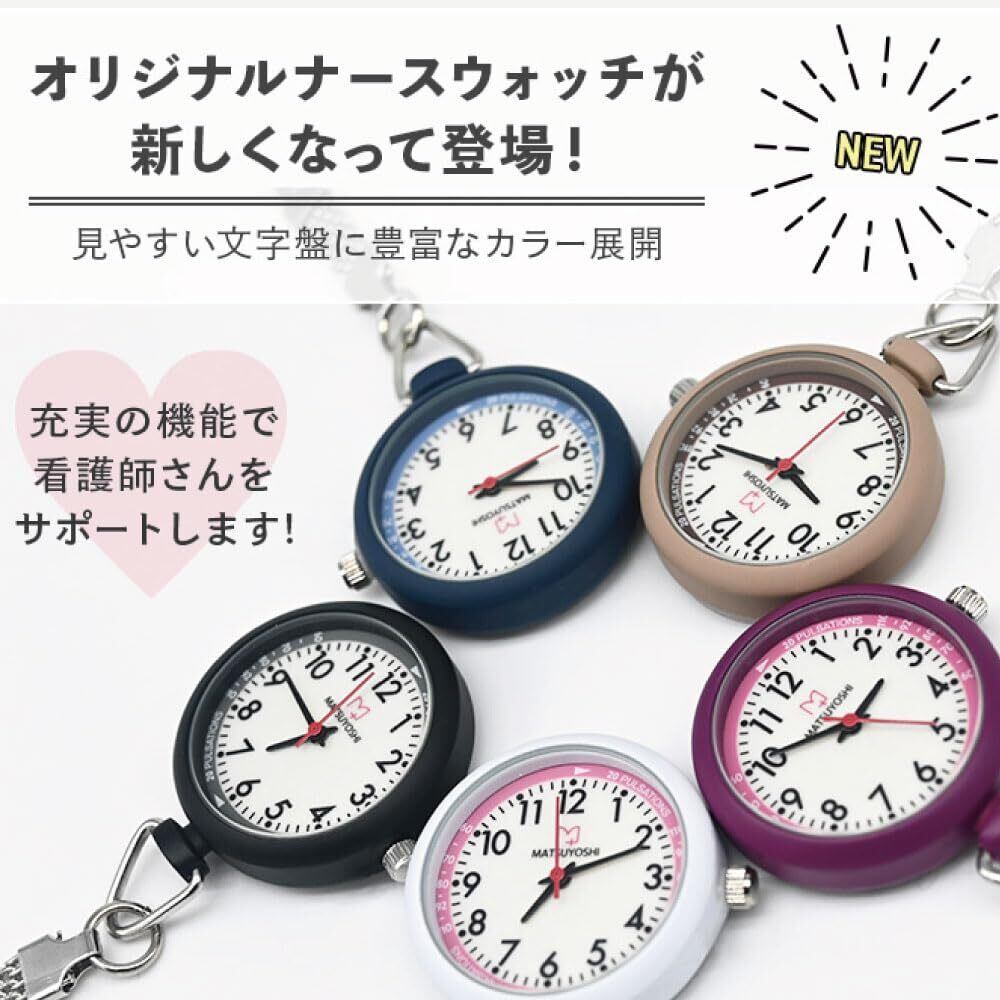 マツヨシ ナースウォッチ ブラック 蓄光 クリップ式 文字盤 医療 看護 看護師 ナース時計 ナースグッズ 病院 時計 ウォッチ クリップ 黒 シルバー 見やすい ポケット 持ち運び