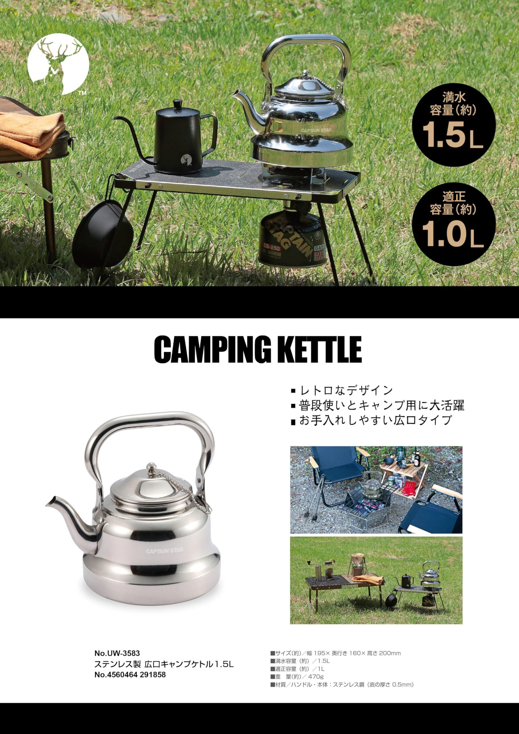 キャプテンスタッグ(CAPTAIN STAG) キャンプ バーベキュー用 やかん ケトル 満水容量1.5L ステンレス製 広口キャンプケトル UW-3583