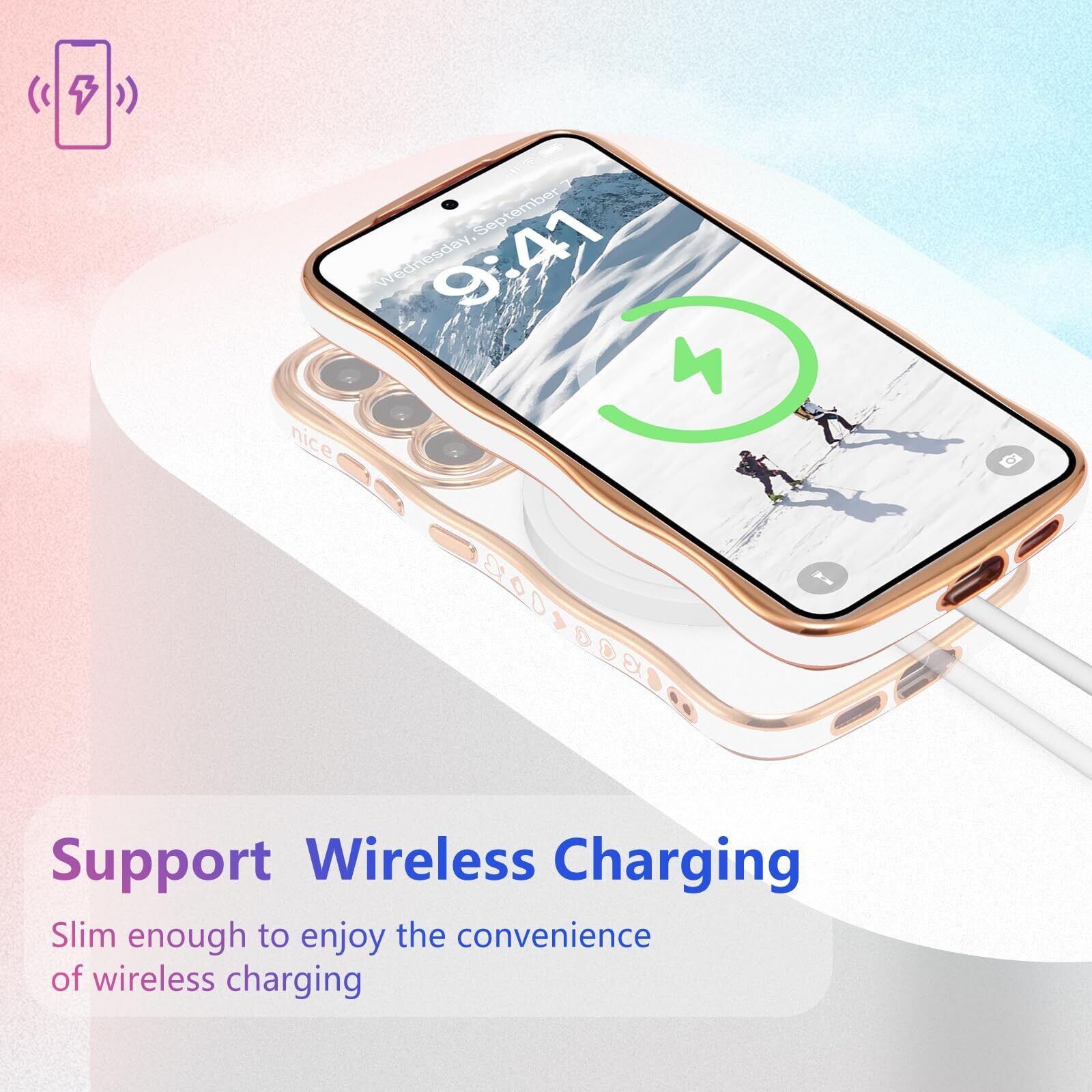 Samsung Galaxy S25に対応、購入前に機種をご確認ください。柔らかく柔軟なtpu素材を使用し、エッジとカメラエッジの周りにメッキ技術を使用しています。カーリーウェーブフレームがエレガントさと快適なグリップ感をプラスし、ラブハートパターンがチャーミングな魅力をさらに引き立てます。縁取りのメッキ加工が、このスマホケースにトレンディでファッショナブルな印象を与え、誰の目にも留まることでしょう。