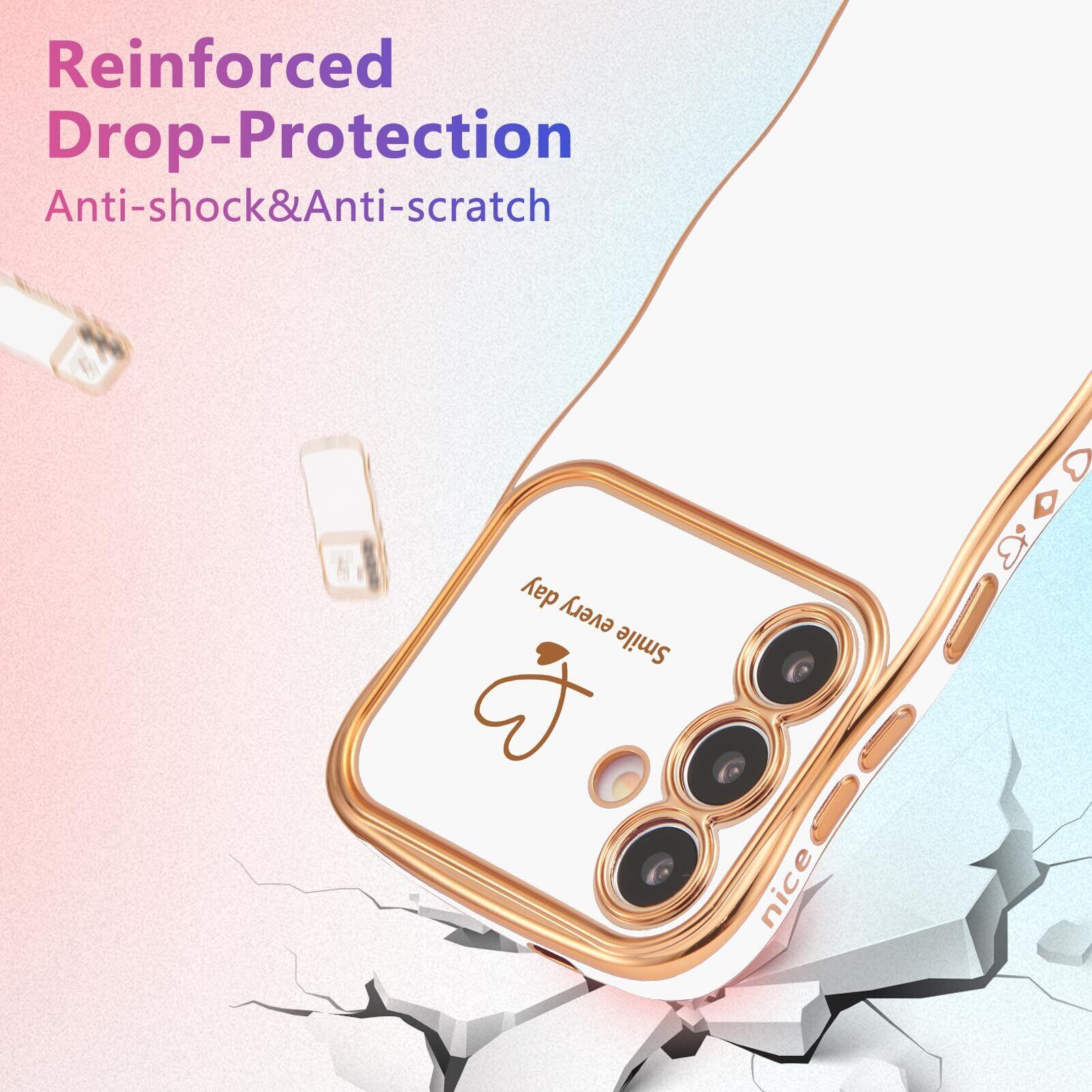 【美しいデザイン】波状の側面が快適なグリップを提供;メッキトリムと愛の心は、携帯電話のかわいいとファッションを作る;女の子と女性のための素敵な贈り物。