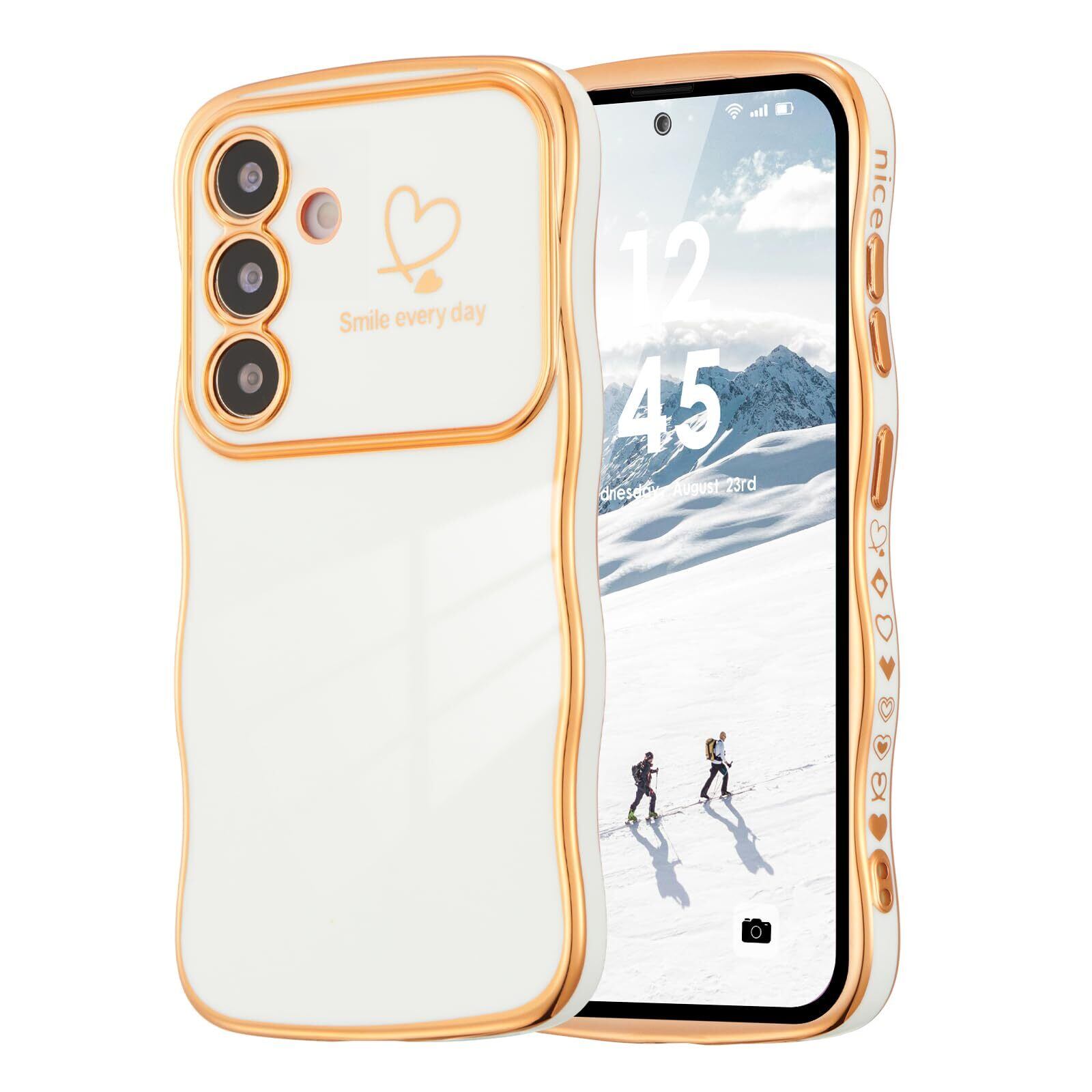 【人気商品】ZTOFERA Samsung Galaxy S25 5G 用 ハートケース 人気 おしゃれ サムスン ギャラクシー S25 ウェーブ ケース 柔軟な TPU シリコン スマホケース メッキ加工 ソフト 軽量 耐衝撃 韓国 可愛い ケース 女子 女性 携帯電話カバー ワイヤレス充電対応 (ホワイト)