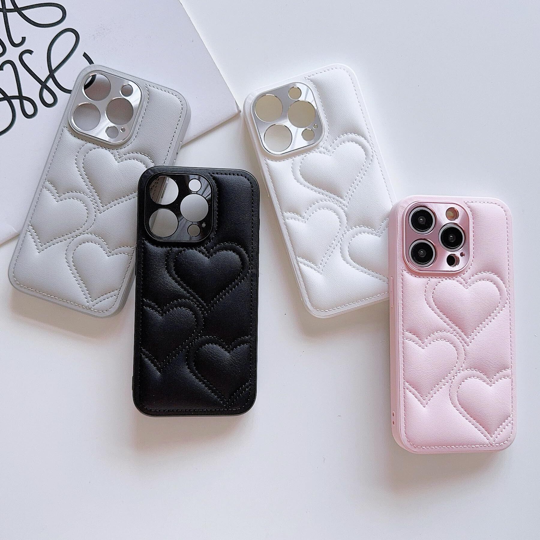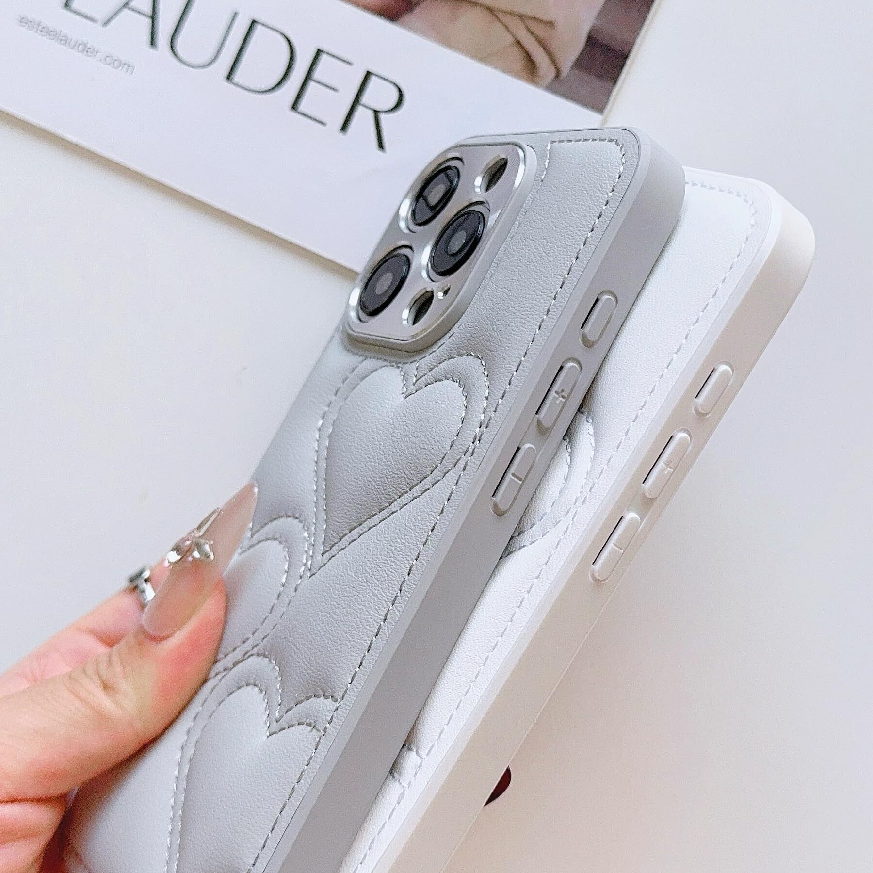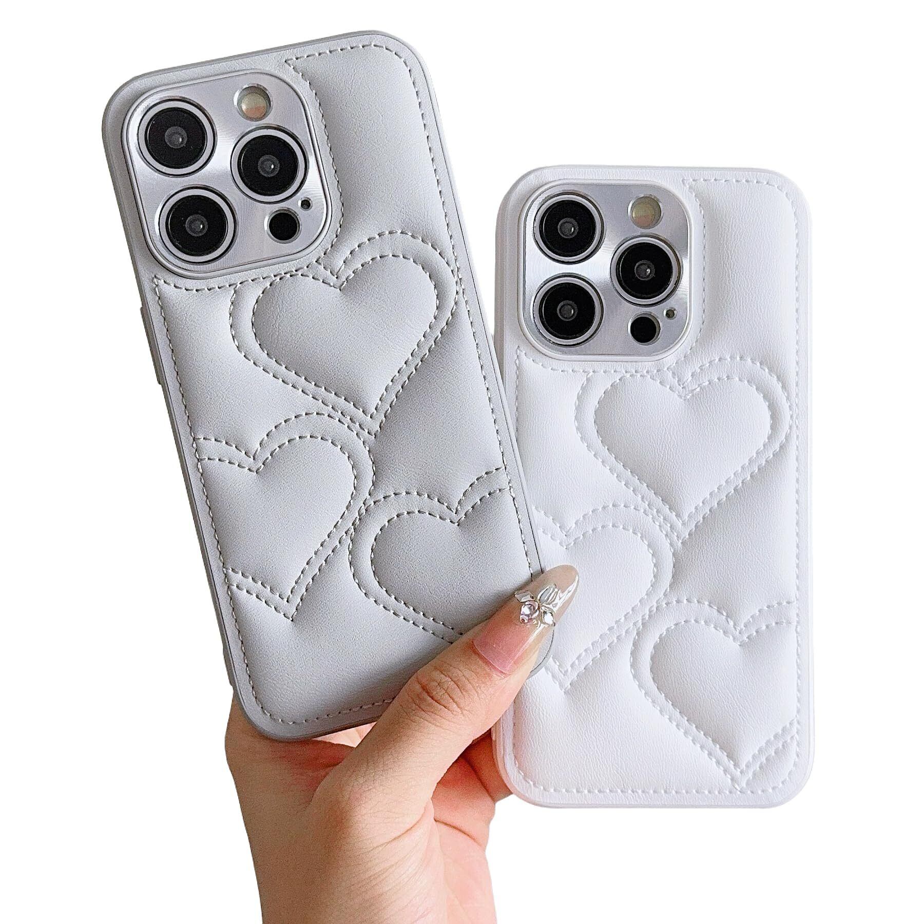 Lnobern スマホ ケース 韓流 対応 iPhone 16 Pro ケース シンプル 可愛い ハート柄 手つくり アイフォン おしゃれ 耐衝撃 カメラ保護 背面 カバー (灰色, For iP16 Pro)