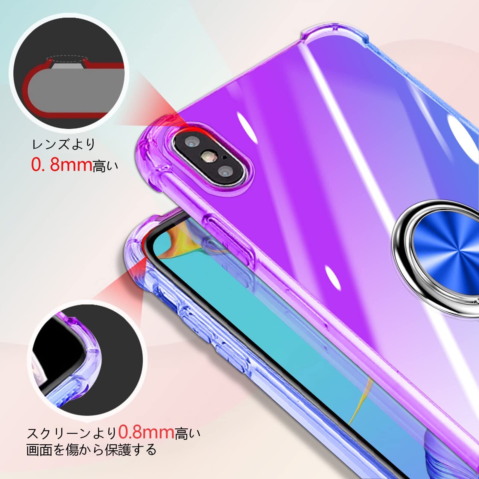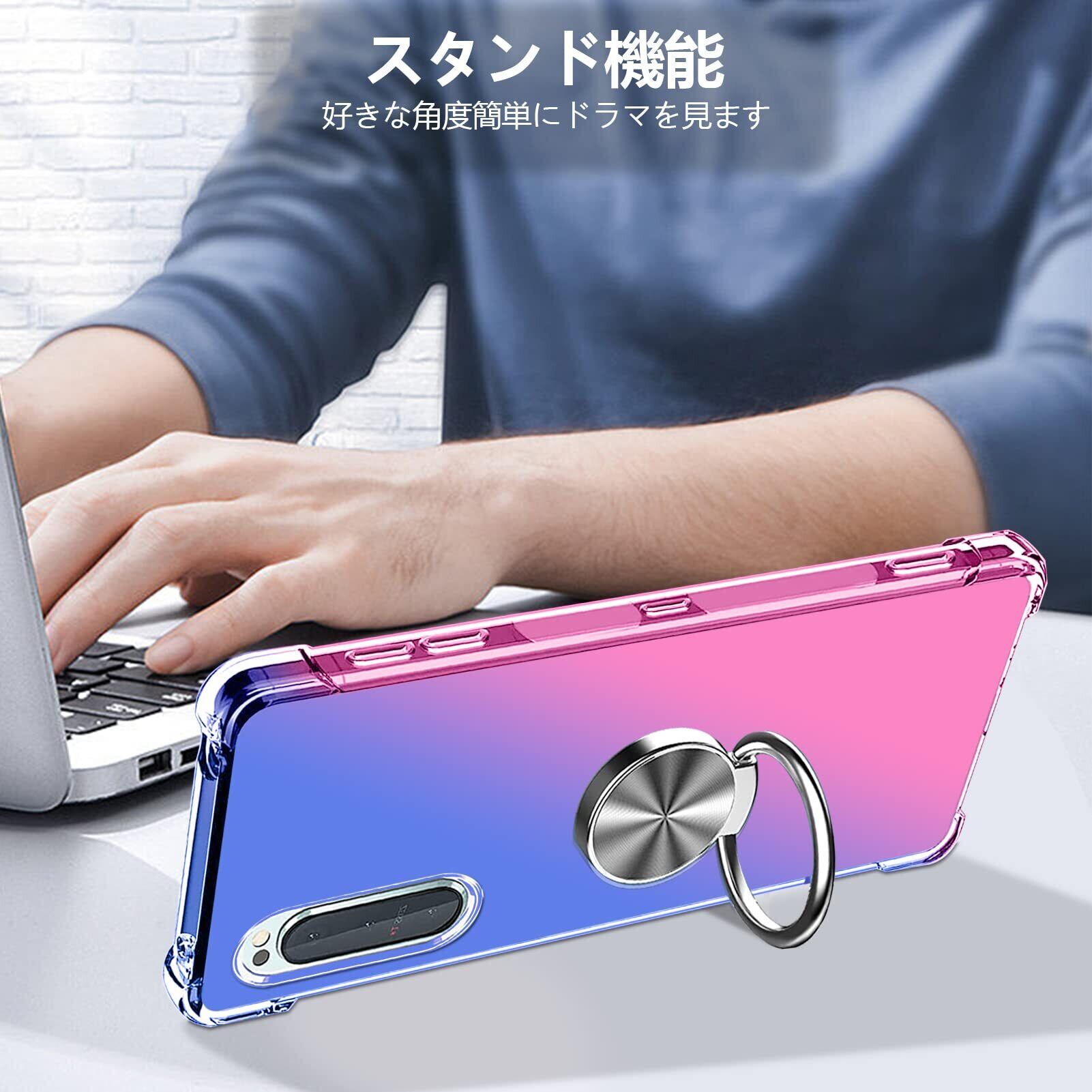 Arrows Be4 Plus F-41B ケース リング付き クリア 耐衝撃 車載ホルダー対応 スタンド機能 薄型 グラデーション 透明 TPUバンパー 薄型 軽量 取り出し易い 全面保護 カバー 光学メッキ加工 おしゃれ 擦り傷防止 指紋防止 ストラップホール付き スリム ブルー/ピンク MJJ-ZH-1044-068-4