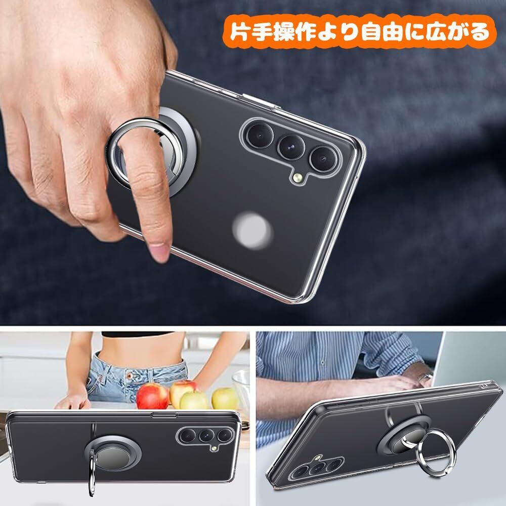 Galaxy A54 5G ケース SC-53D SCG21 リング付き 透明 ギャラクシー A54 スマホケース リング クリア シリコン 薄型 スタンド機能 耐衝撃 耐久 滑り止め(Galaxy A54 5G クリア)