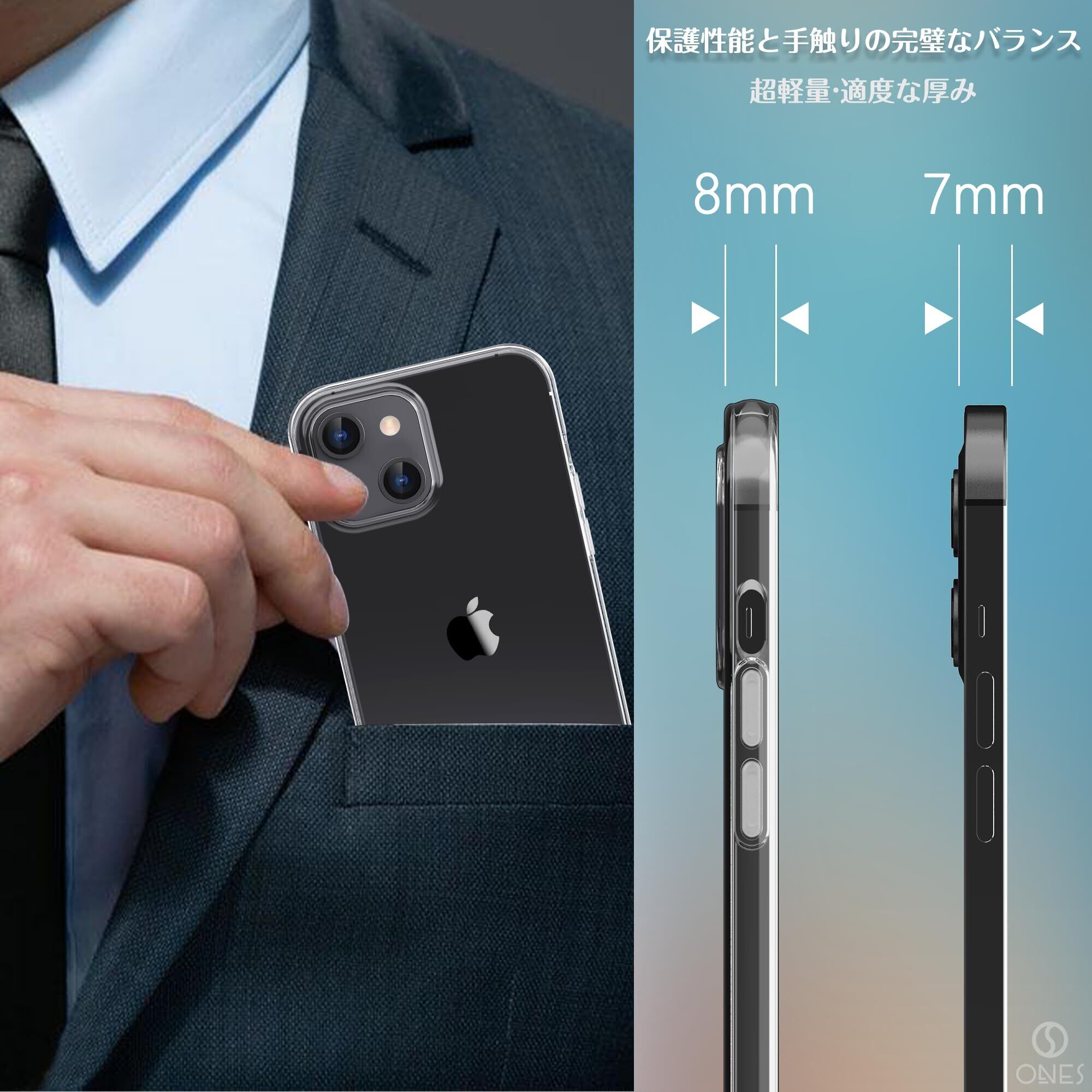 ONES iPhone15Plus用ケース HD全透明 米軍MIL規格 超耐衝撃 『 画面 · レンズ保護、滑り止め 』〔 薄型、超軽量、持ちやすい 〕 Qi充電 衝撃吸収 HQ·TPU フィット感 クリア カバー