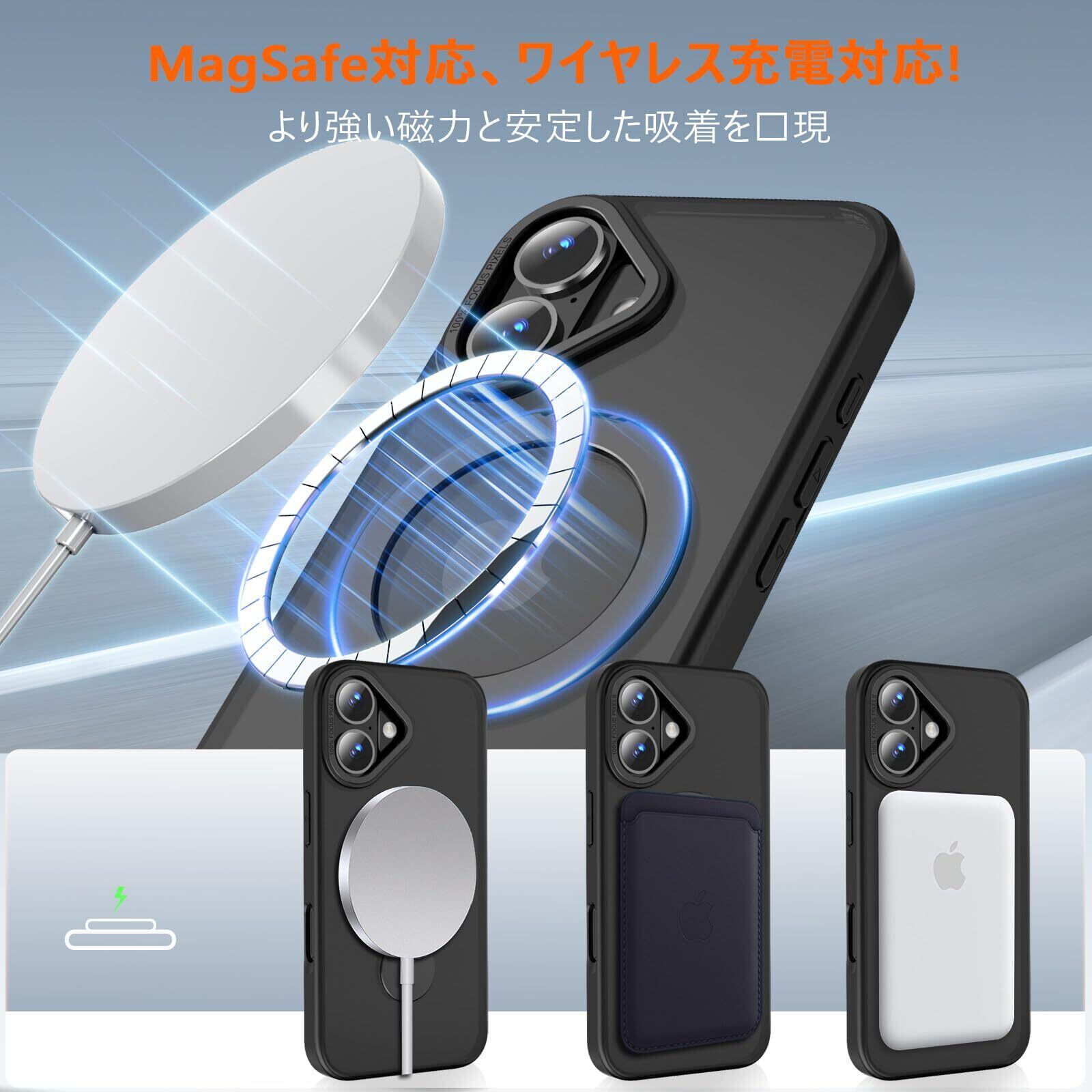【MagSafe対応・強力な磁力吸着】いphone16plus用 マグセーフ ケースには、N52の高強度MagSafeテクノロジーが採用されており、MagSafe金具がしっかりと固定されて安定性を確保し、簡単に外れることはありません。携帯電話ケースには磁力がアップグレードされた強力なマグネットが搭載されています。ワイヤレス充電、モバイル電源、カーマウント、その他すべてのMagSafeアクセサリにも適しています。安定性を持ち、充電器を近づけると高速ワイヤレス充電が実現です。強力な吸着力で、ワイヤレス充電のためにスマートフォンケースを取り外す必要はありません。