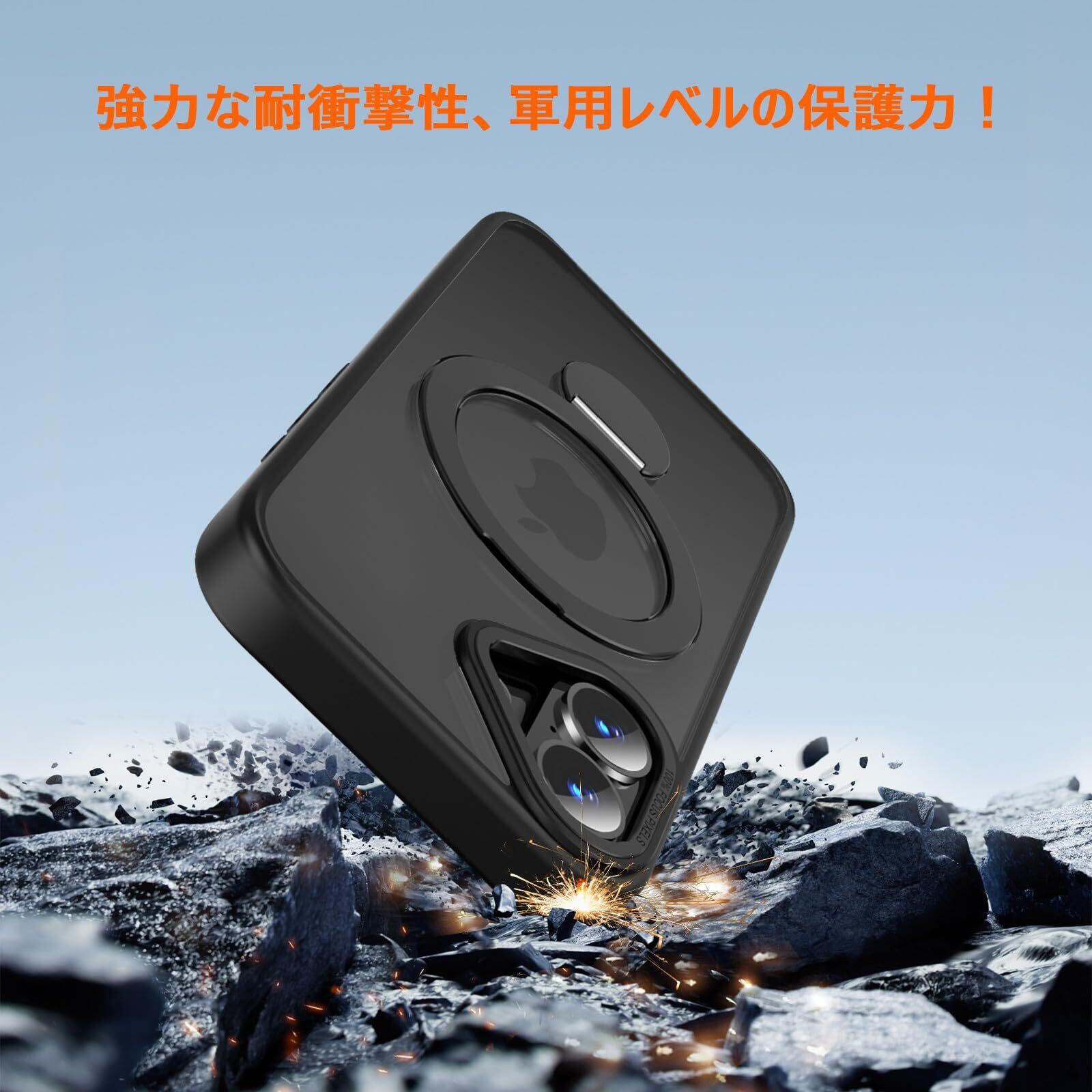 【新春セール】iphone 16 plus 用 ケース MagSafe対応 ワイヤレス充電 いphone16 plus ケース 高耐久性 米軍MIL規格 アイフォン 16 plus カバー リング スタンド マグネット搭載 スマホケース iphone 16 plus 隠し収納式 縦横両対応 スマホカバー アイフォン 16 plus 全面保護 軽量 マット仕上げ 半透明(6.7インチ)ブラック【SHANGHAO】