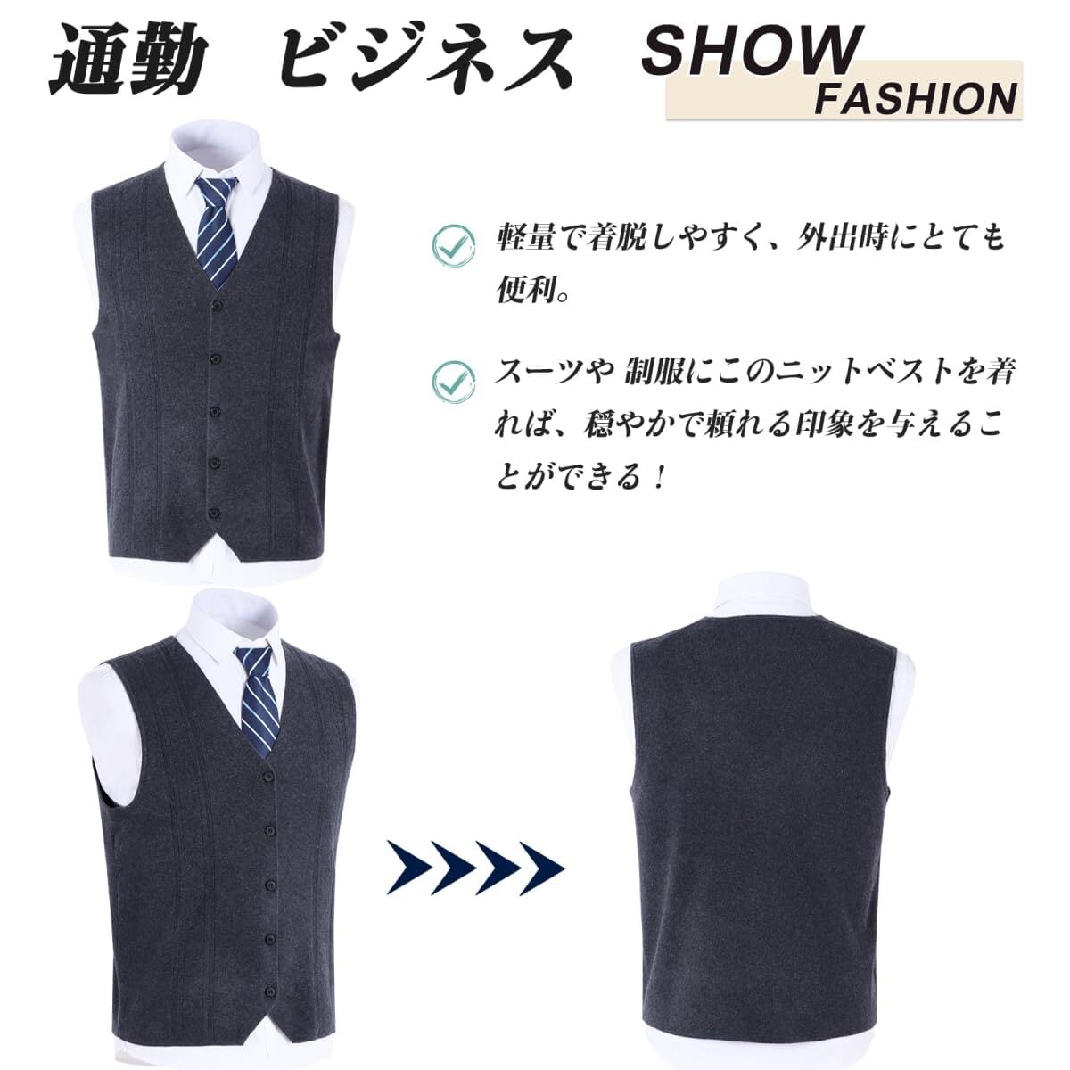[Kayiyasu] ニットベスト メンズ 前開き ベスト Vネック セーター 薄手 洗える 無地 大きいサイズ トップス 毛玉にできにくい ビジネス カジュアル 紳士 通勤 M-4XL