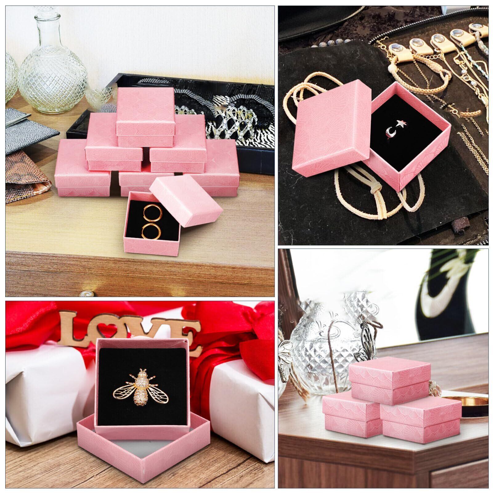 NUOLUX ギフトボックス アクセサリー 指輪収納 恋人 ラッピングボックス リングボックス ジュエリーボックス 紙箱 クラフト紙 ジュエリー収納ボックス 24個セット 5x5cm アクセサリーケース ジュエル プレゼント 正方形 指輪 ピアス リング 小物入れ 包装 贈り物(ピンク)