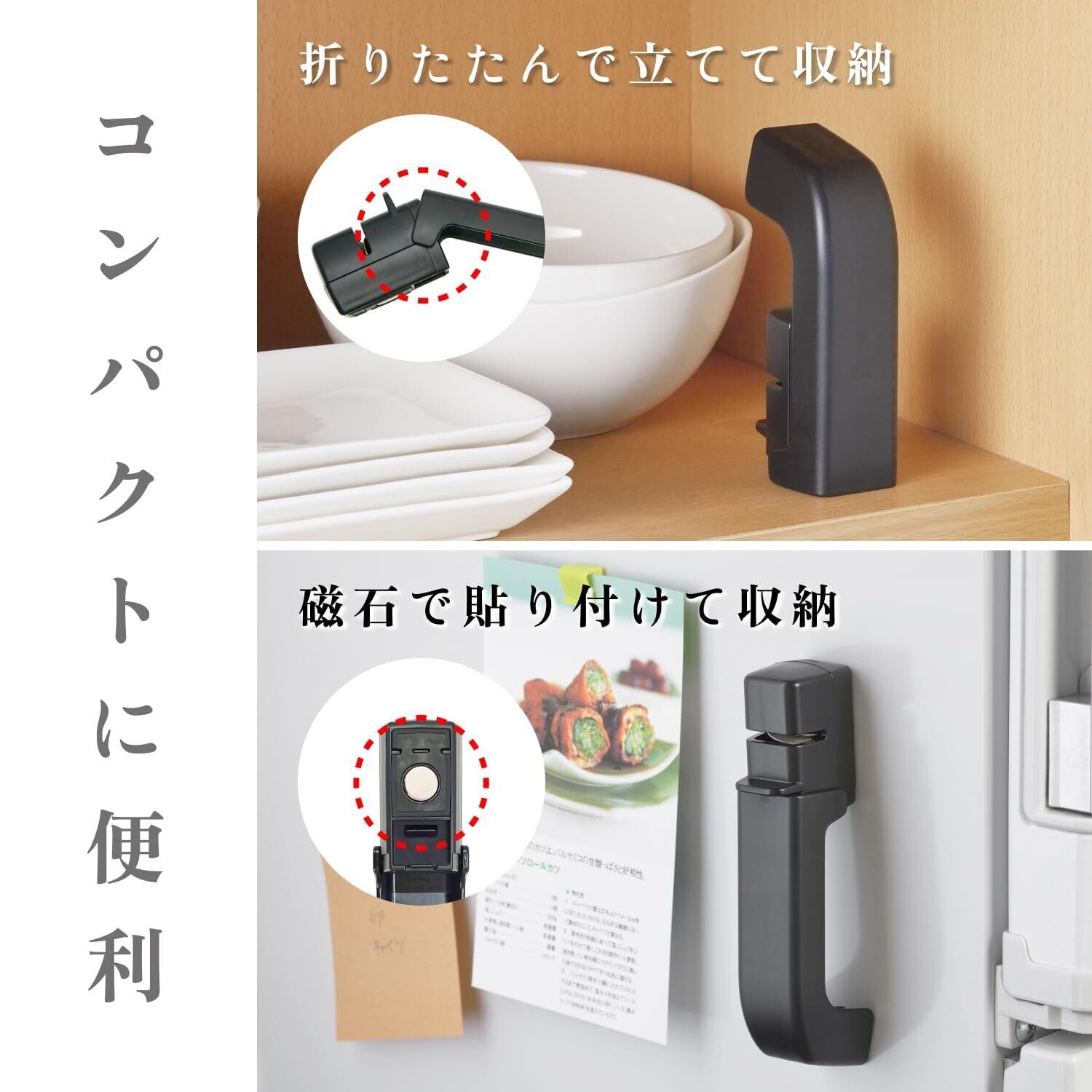 【マグネット搭載】強力マグネットのネオジム磁石使用。冷蔵庫やマグネット面に貼り付けて収納することもできます。冷蔵庫などに貼り付けて収納した場合も、シンプルなデザインのため景観の邪魔をせず馴染みます。※折りたたみ時にはマグネットの使用ができません。