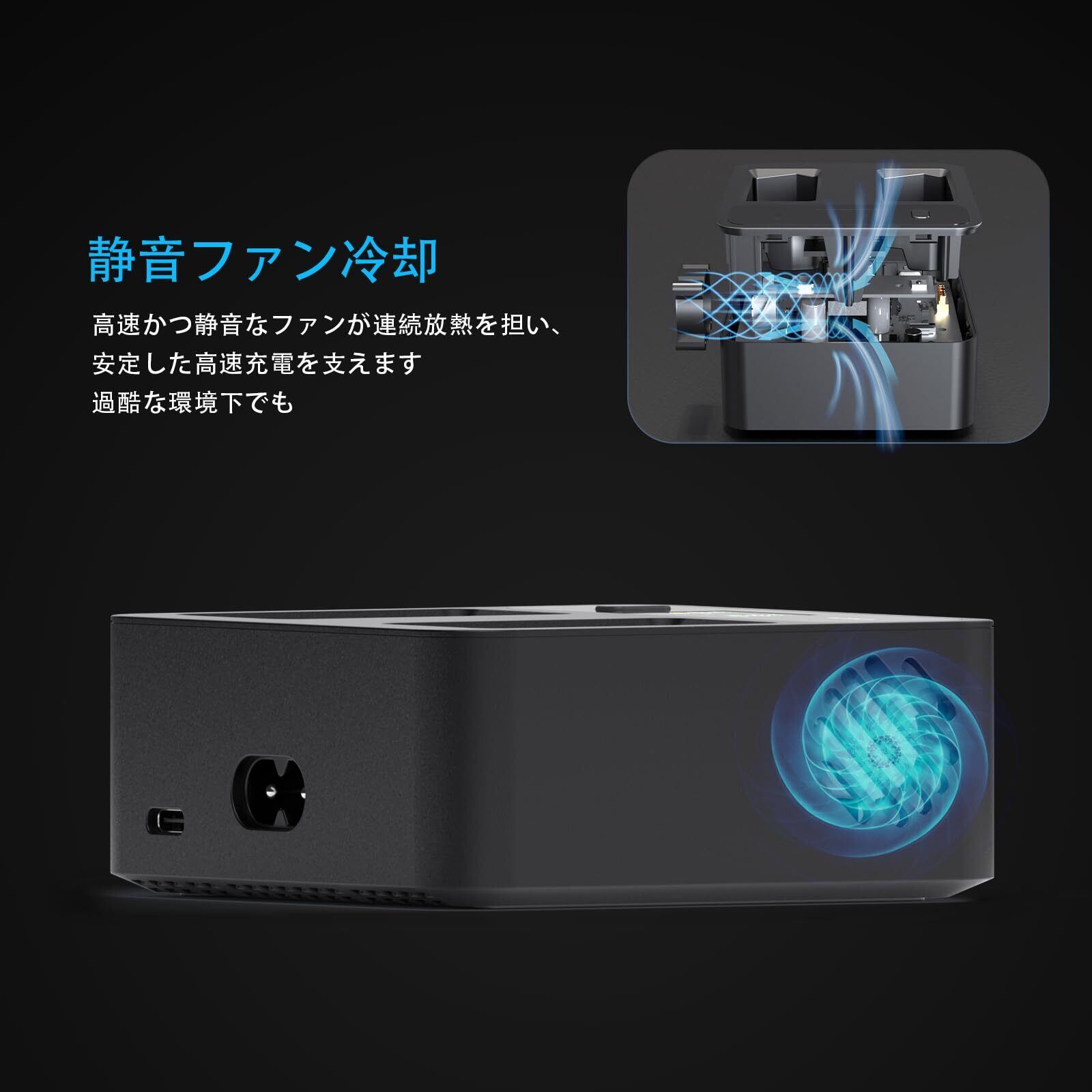 【GaN技術+冷却ファン】窒化ガリウム採用で小型軽量化しつつ高効率を実現。内蔵ファンが熱暴走を防止し長時間安定動作。