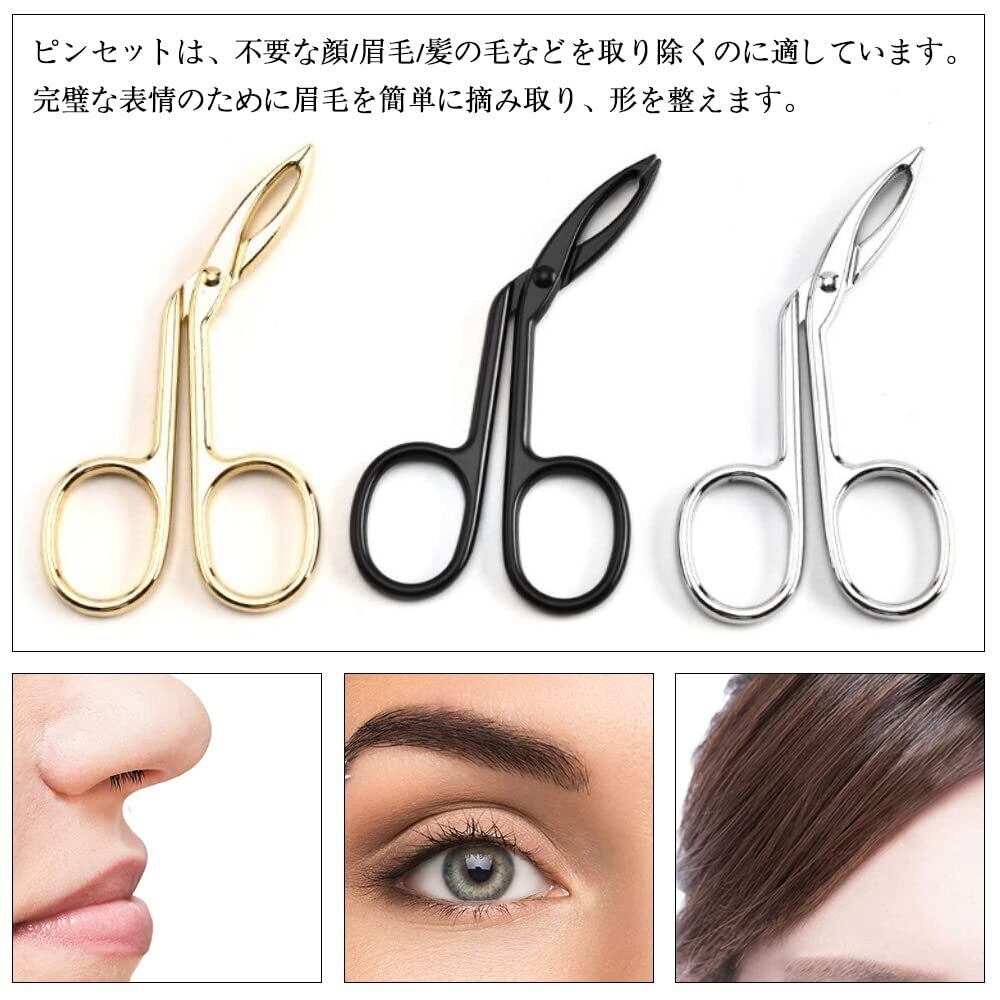 3個入り ハサミ型毛抜き 鋏型 曲げヘッド 眉毛 はさみ シンプル ハサミ型毛抜き 毛抜きハサミ 化粧工具 眉毛 ひげ 鼻毛 多機能
