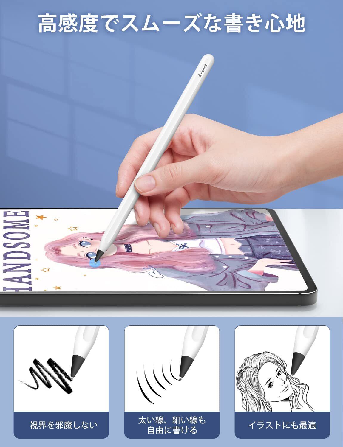 【完璧な対応性】Apple Pencil 第1/2世代/USB-C/Pro、ロジクール Crayonに対応しています。iPadに保護フィルムを貼り付けても使用できます。交換用チップは特別に設計Apple鉛筆の形をしています。オリジナルの先端とまったく同じサイズ、ペーパーライクフィルムと一緒に使うと、更に紙に描いているよう描き心地になり、 安全で確実に使用されています。
