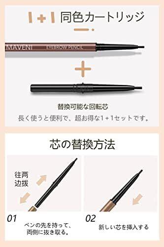 マベニ(Maveni) 超細芯 アイブロウペンシル 極細 ブラシ付き 落ちにくアイブロウ 【同色ペルシ付属 詰め替え用】水・汗・皮脂に強い (3#-コーヒーブラウン)