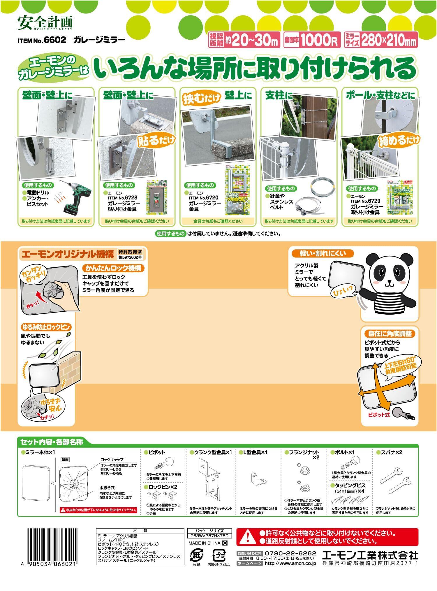 【特価商品】エーモン(amon) 安全計画 ガレージミラー 曲面率1000R 約280×210mm 6602