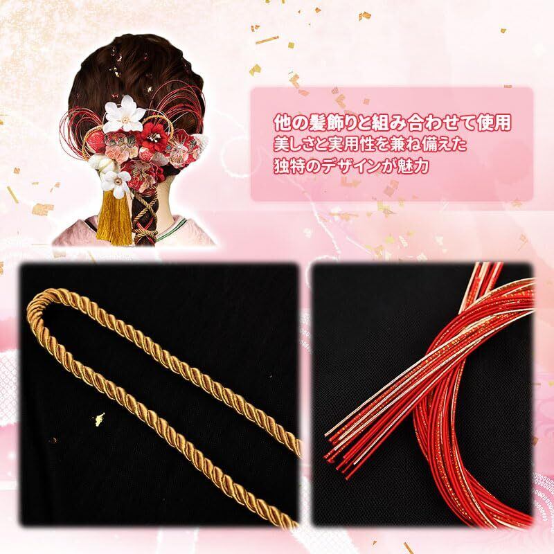 和装髪飾りヘアアクセサリーセット内容:金箔:1点 水引:約90cm*15本 Uピン:10本 ピン:10本 組紐:長さ約100cm 単体でも、他の髪飾りと組み合わせて使用するのもOKです。