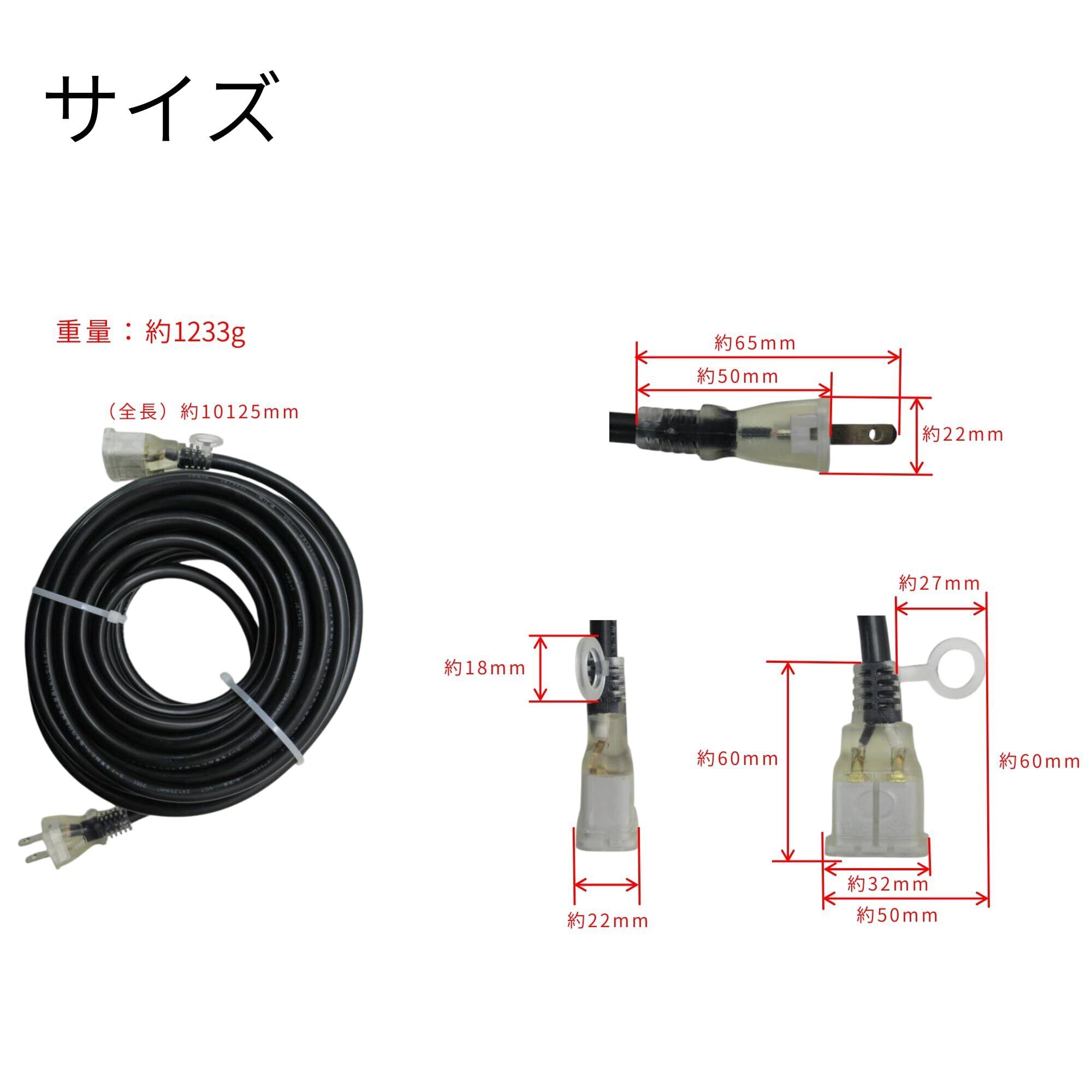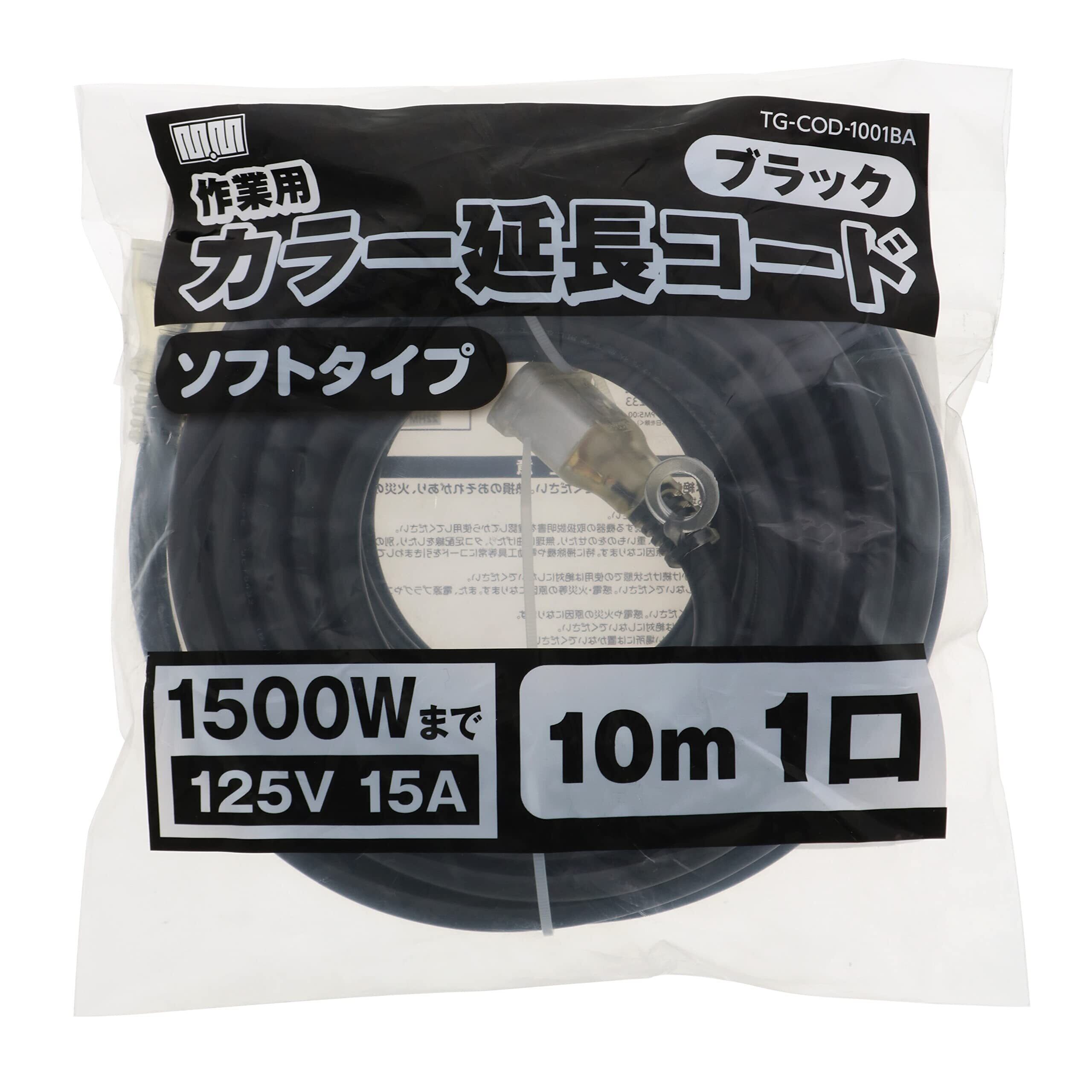 髙儀(Takagi) M・M カラー 延長コード 10m 1口 ブラック TG-COD-1001BA 1500Wまで 125V 15A 1個口 電源タップ コンセント 電源ケーブル 延長ケーブル 電源コード コンセント たこあし 延長電源 電工 高儀 たかぎ TAKAGI