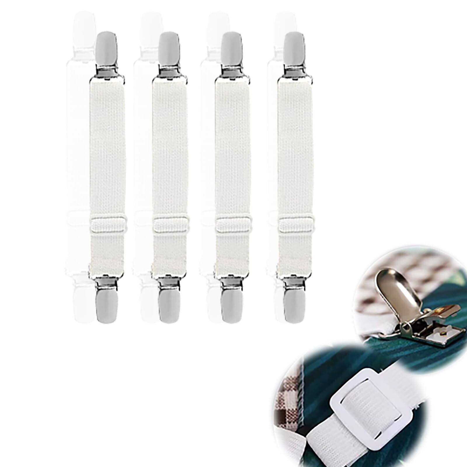【新春セール】[ALLVD]布団クリップ シーツのずれを防ぐ ゴム製 アイロン台カバークリップ 調整可能 弾力性がある(4本入) (白)