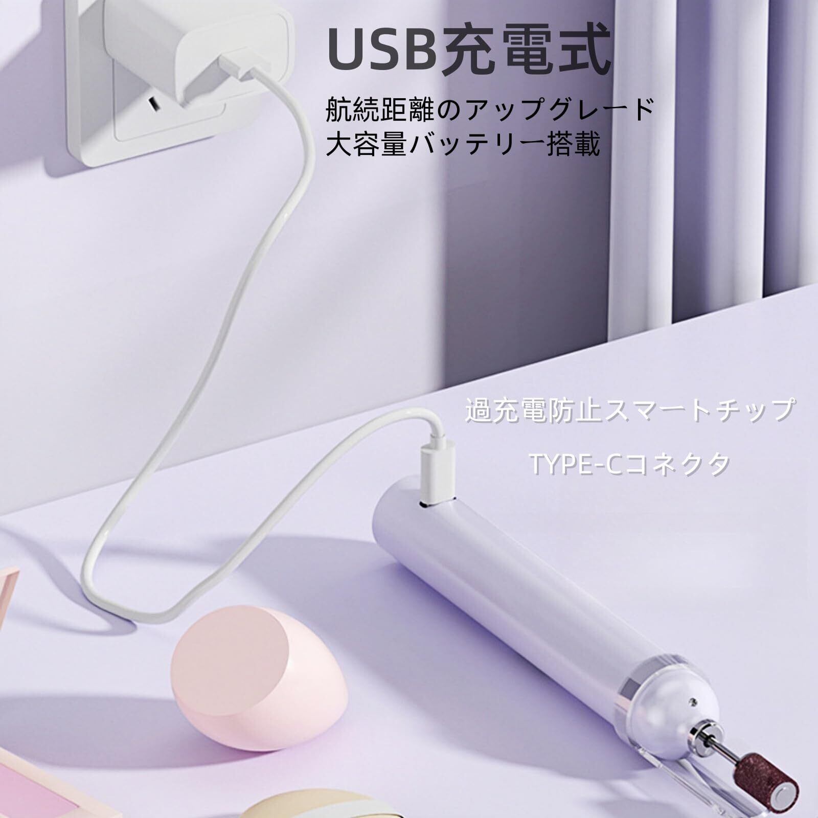 YUNMI 電動ネイルマシン 研磨 爪磨き 6個のビット LEDライト搭載 甘皮処理 甘皮ケア ネイルドリル ジェルネイルオフ マニキュア対応 USB充電 自宅サロン用 (ホワイト)