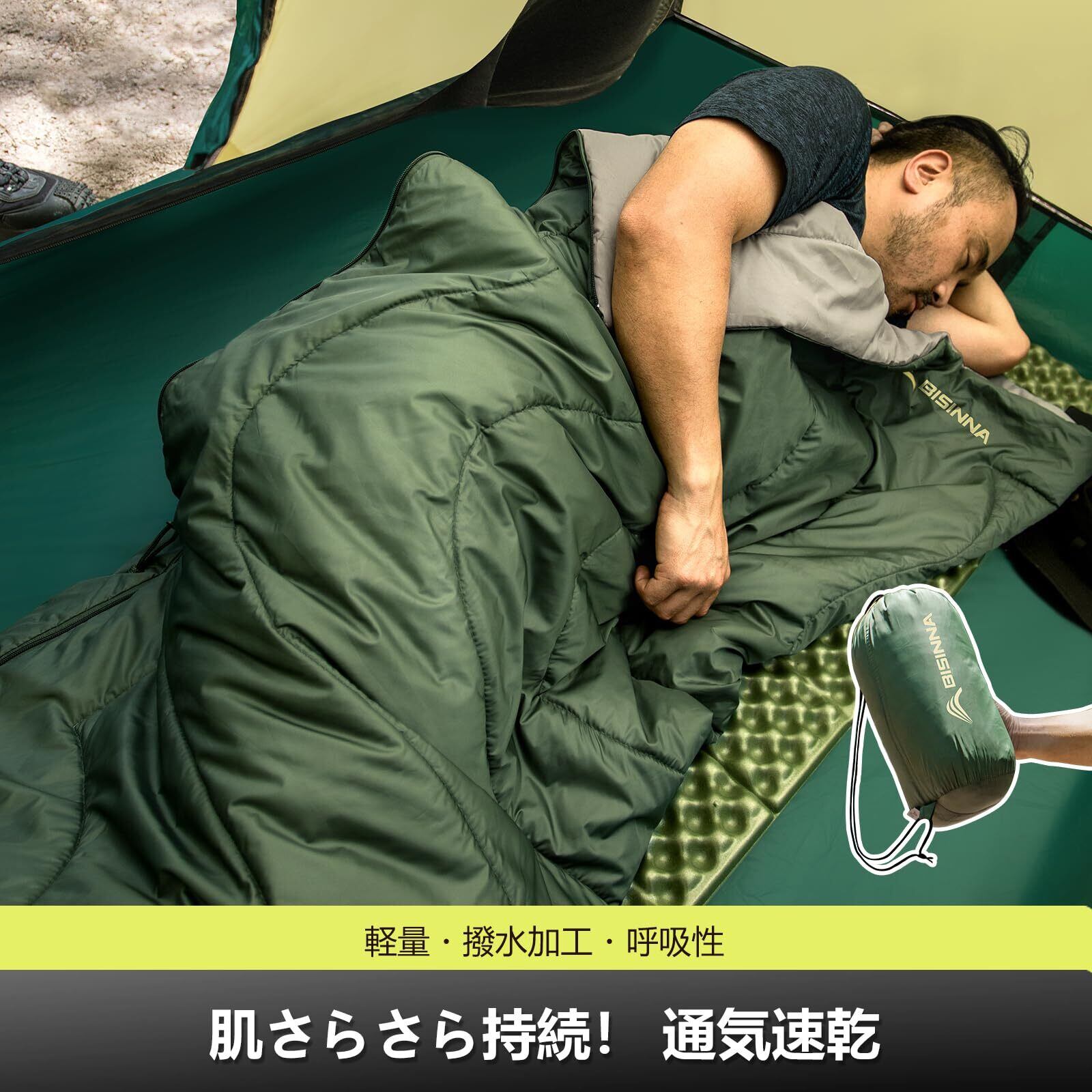 BISINNA 寝袋 夏用 封筒型シュラフ 超軽量680g コンパクト 防水加工 75x190cm アウトドア キャップ 丸洗い可能 掛け布団2way 車中泊 防災用 収納袋付き