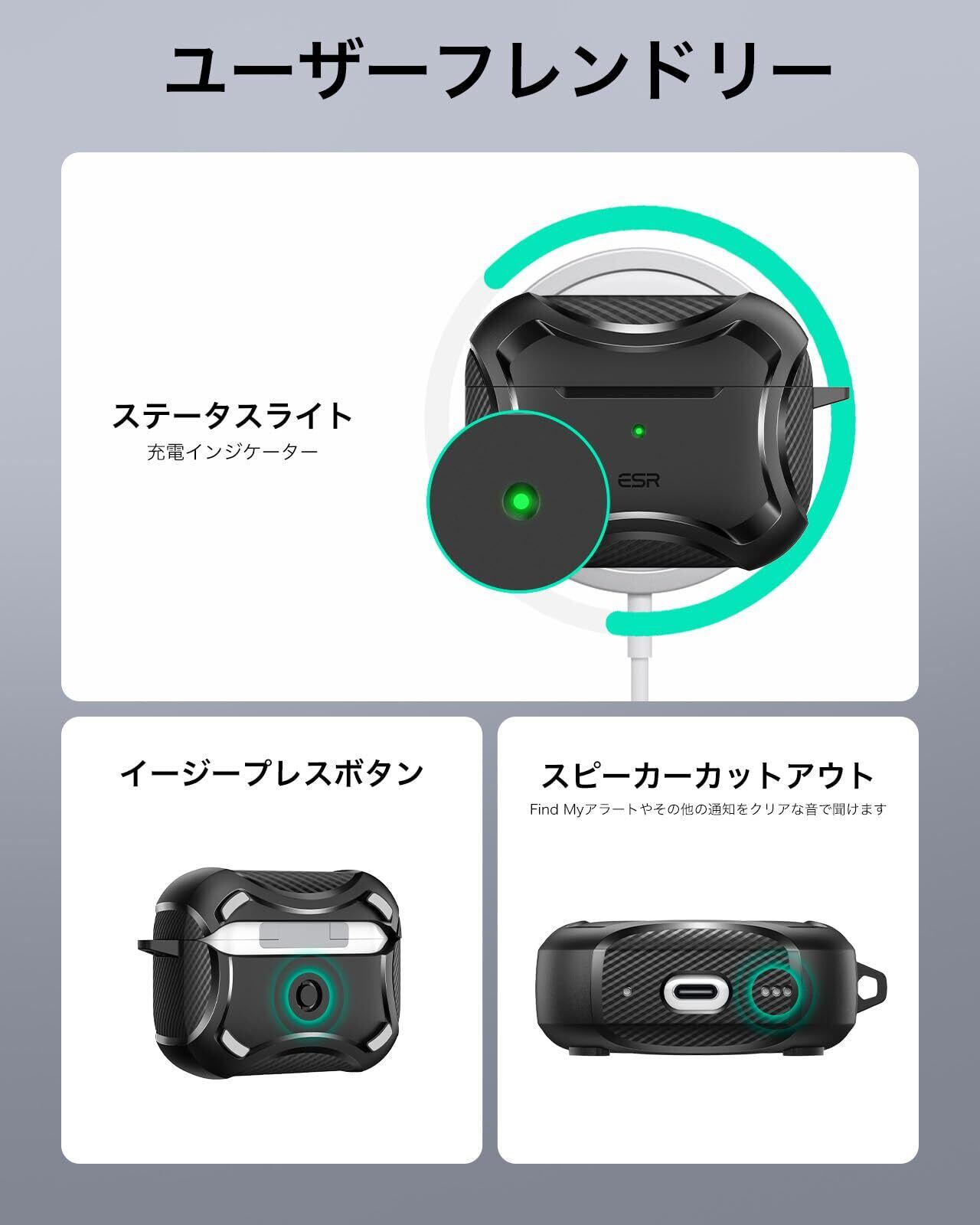ESR AirPods Pro2 ケース MagSafe対応 AirPods Pro 第2世代/第1世代 (2023/2022/2019)共通 (USB-C/Lightningケーブル対応)、強力な落下防止、磁気付き蓋、ブラック