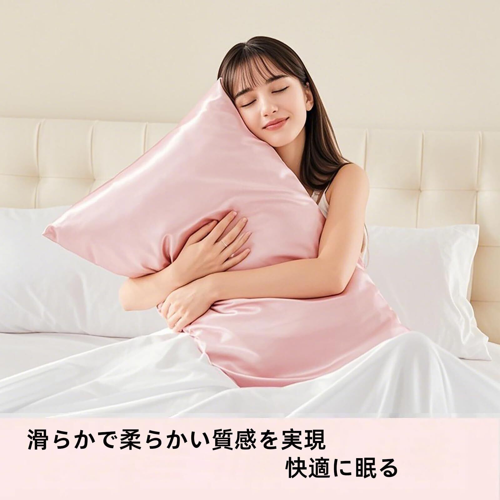 【枕カバー詳細】枕カバーは35 x 50 cmと43 x 63 cmの2サイズ。枕カバーは両面にも優れた人造シルク生地を採用。優れた生地はツルツルしているので肌触りが気持ちよく、寝ている間の保湿と摩擦軽減を実現。枕カバーは簡単な封筒式の設計を採用して、入口が大きく開くので、枕を入れるのがかなり簡単です。