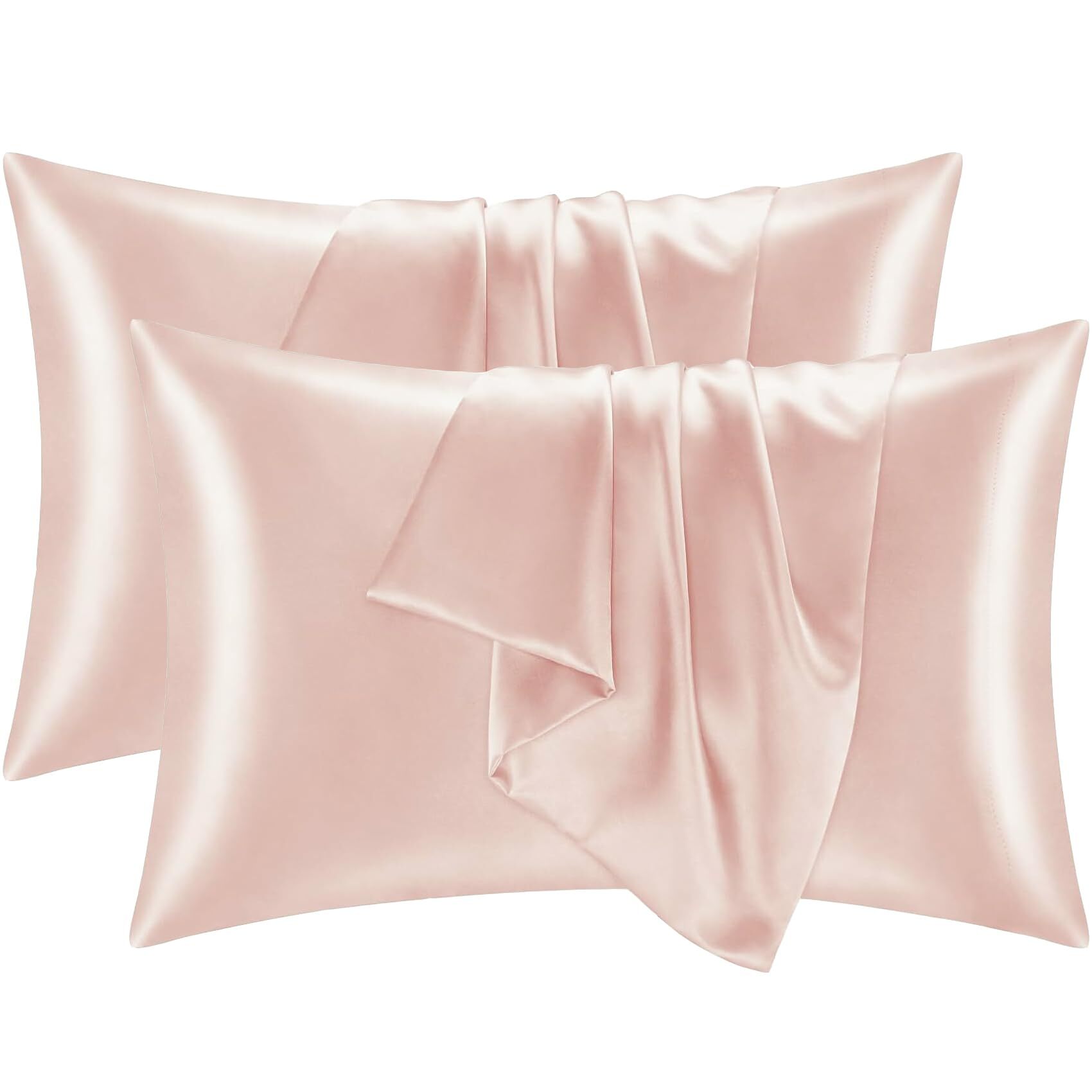 枕カバー 2枚セット 35 50 WGWJM 両面サテン 封筒式枕カバー 摩擦軽減 肌や髪に優しい 防臭防ダニ 敏感肌に優しい まねるシルク 光沢まくらカバー 洗える 高い快適さピローケース 四季適応 静電気防止 ピンク