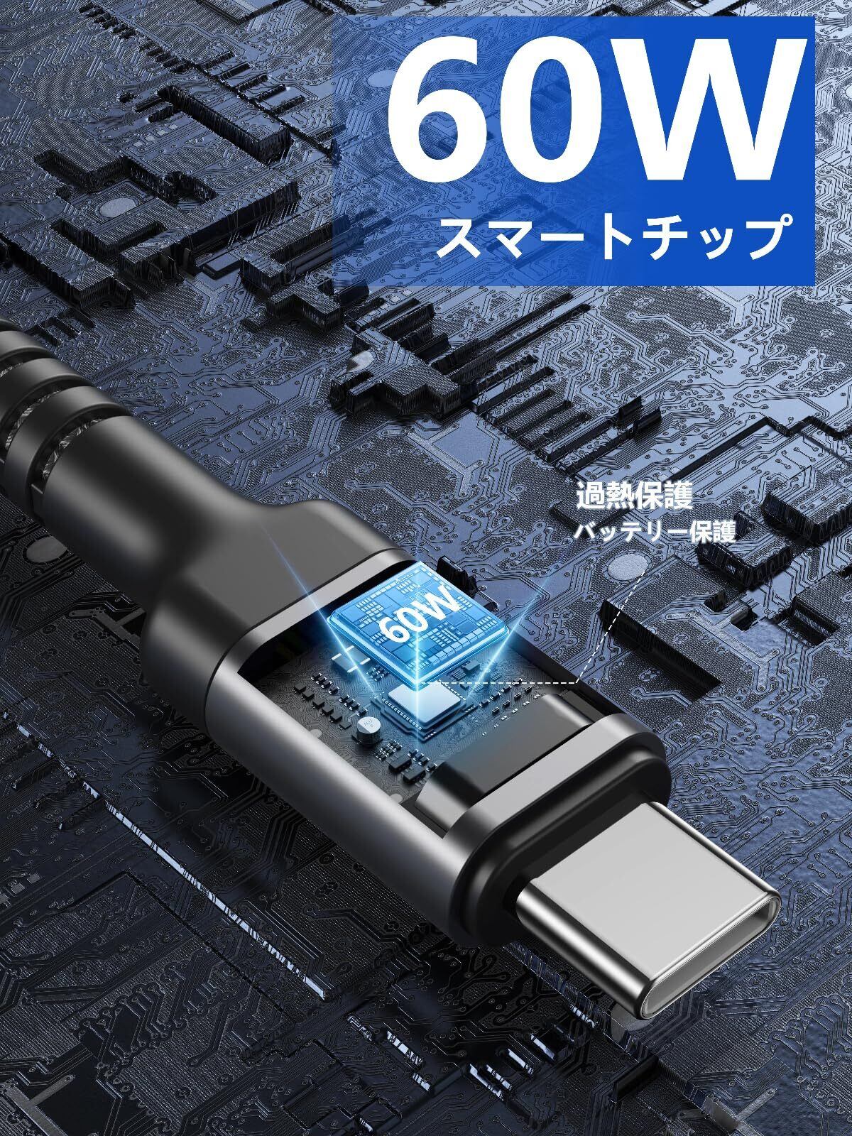 USB Cケーブル 2M タイプC ケーブル PD対応 60W/5A 超急速充電 USB-C to USBC ナイロン編み 断線防止 iPhone 16/15/iPad/MacBook Pro/Galaxy S24/Matebook/iPad各種対応