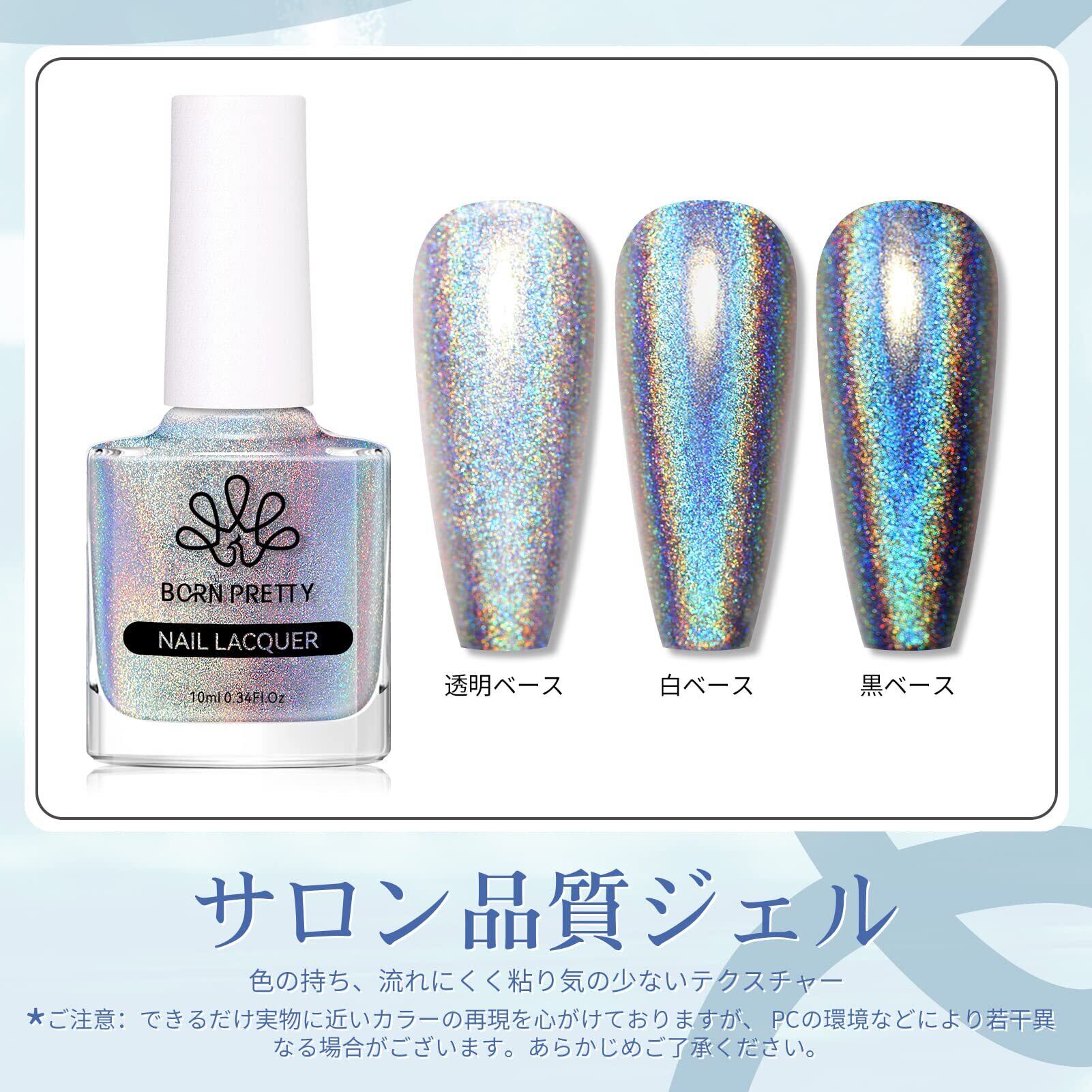 【数量限定】BORN PRETTY マニキュア ユニコーンネイル ラメ入り キラキラポリッシュ 微粒子 ホロ 眩しい虹色 レーザーグリッター ネイルポリッシュ