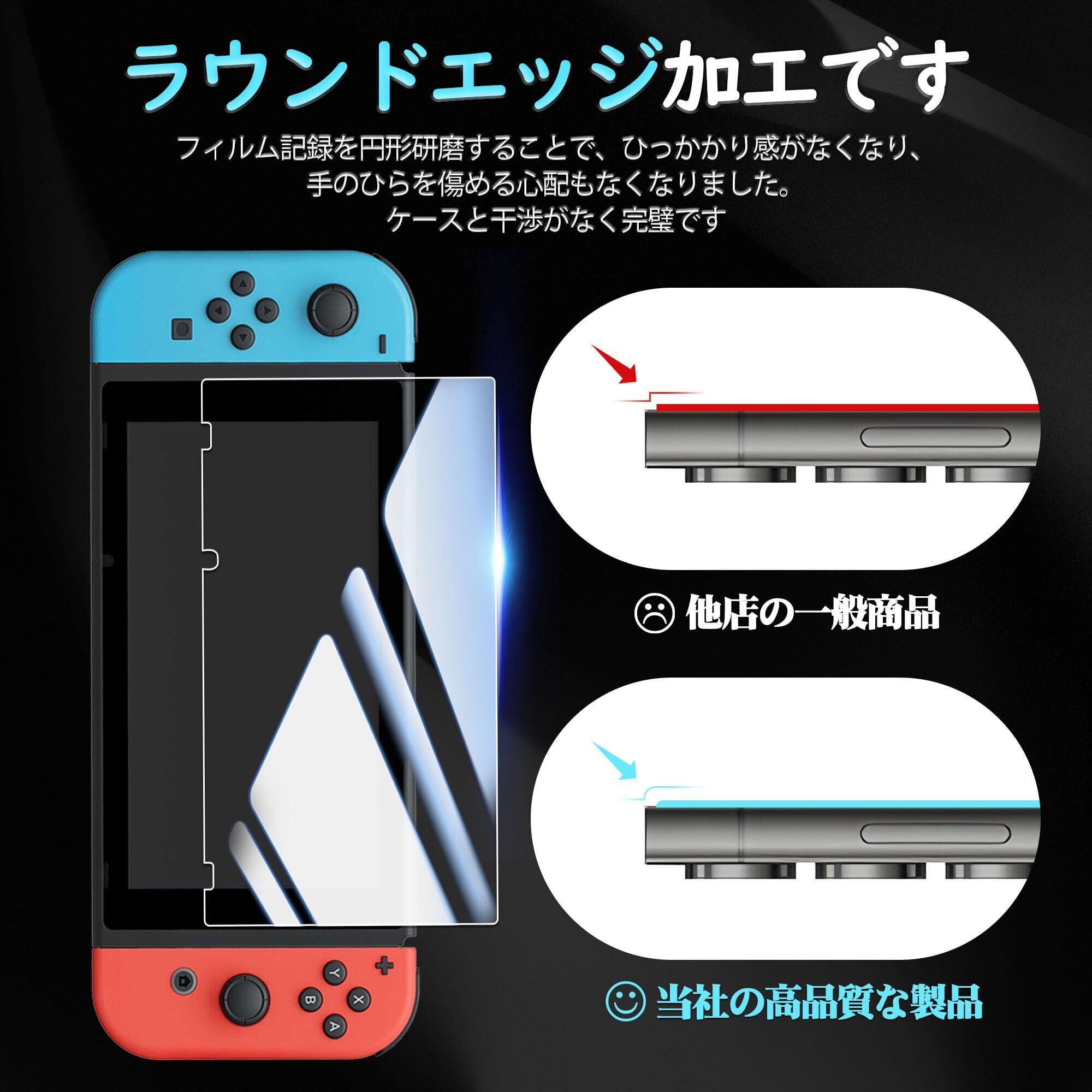 【対応機種】:Nintendo Switch専用ガラスフィルム。【注意】この電話の画面の端は湾曲しているため、保護フィルムのサイズが丁度良い場合、しっかりと貼り付けられず、白いエッジやシェルとの干渉などの問題があるため、保護フィルムは画面よりも小さいです。
