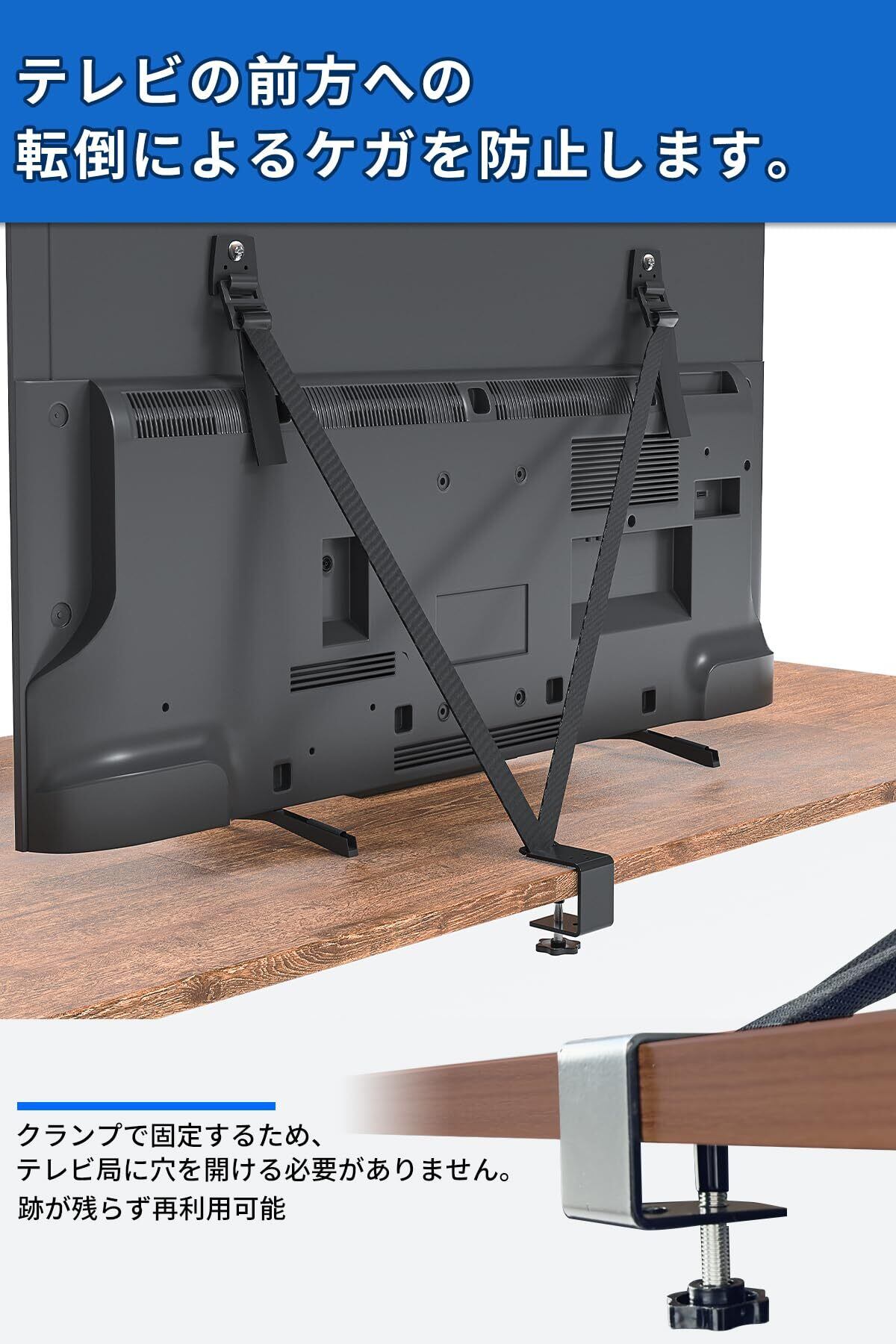 【震度7レベル対応】転倒防止ベルトを固定することで、揺れ時のテレビの落下を効果的に防止し、地震などによる液晶テレビの落下を防止し、転倒による怪我を防止できます。 小さなお子様がいるご家庭では、お子様やペットの落下を防ぎ、財産を守ることにも役立ちます。