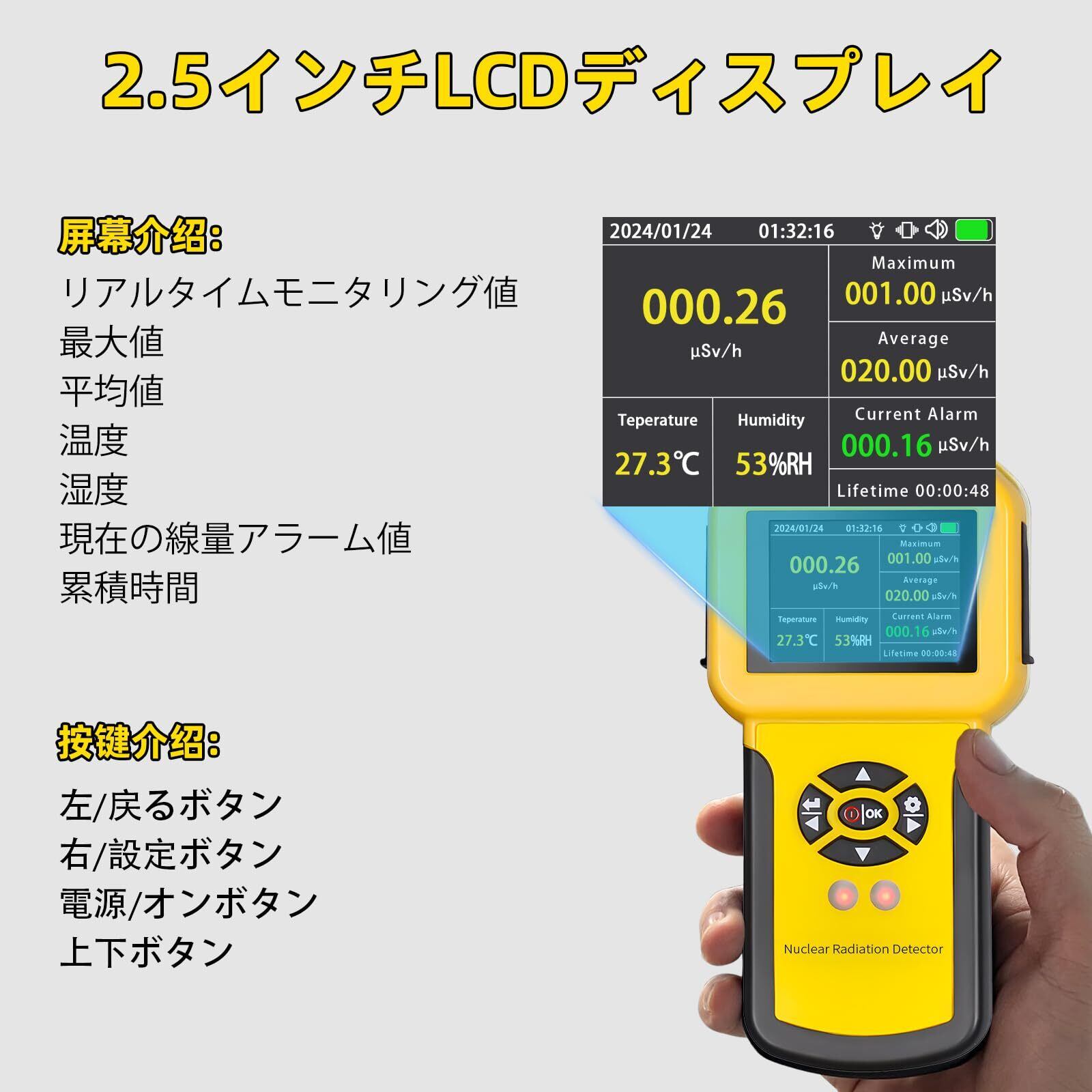 【人気商品】核放射線検出器ガイガーカウンター充電式放射線線量計は電離放射線(X線、ベータ線、ガンマ線)を検出でき、LCDディスプレイ付き、5つの線量単位、3つの警報モード、家庭、工場、大学院で広く使用されています